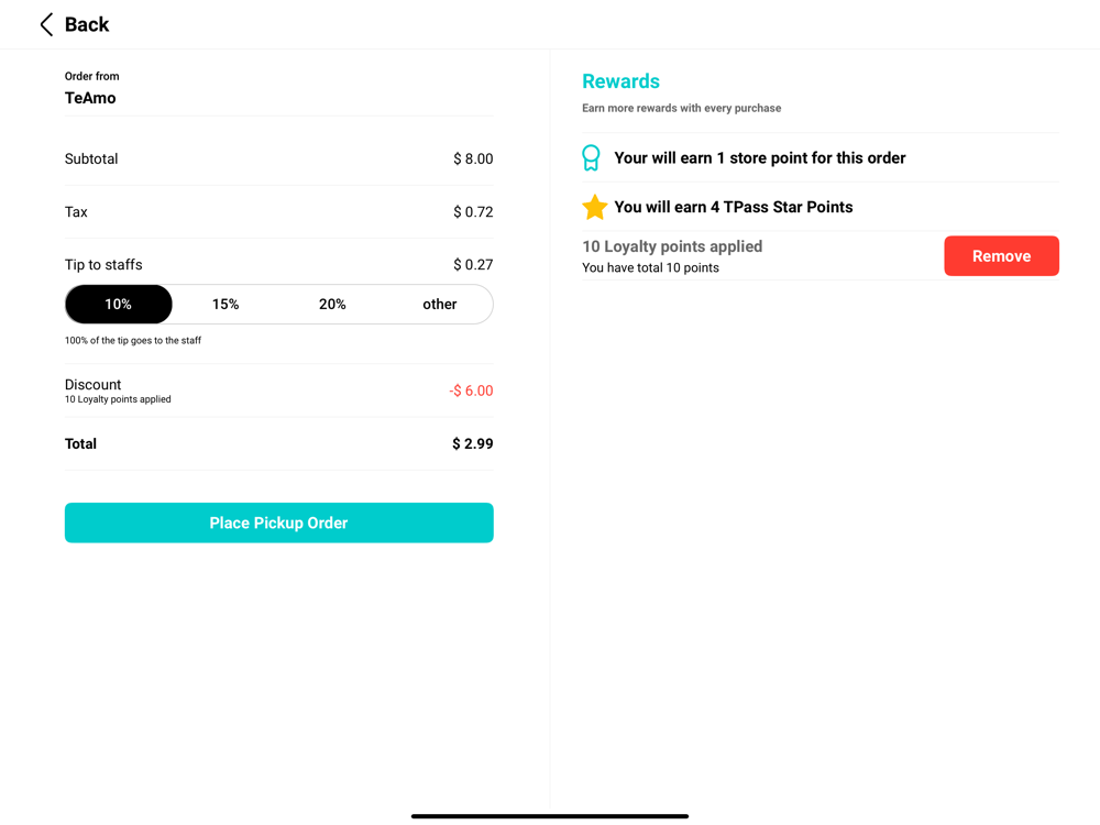 TPass Kiosk is a companion app to turn your iPad into a self-serve Kiosk that customers can order and pay directly.