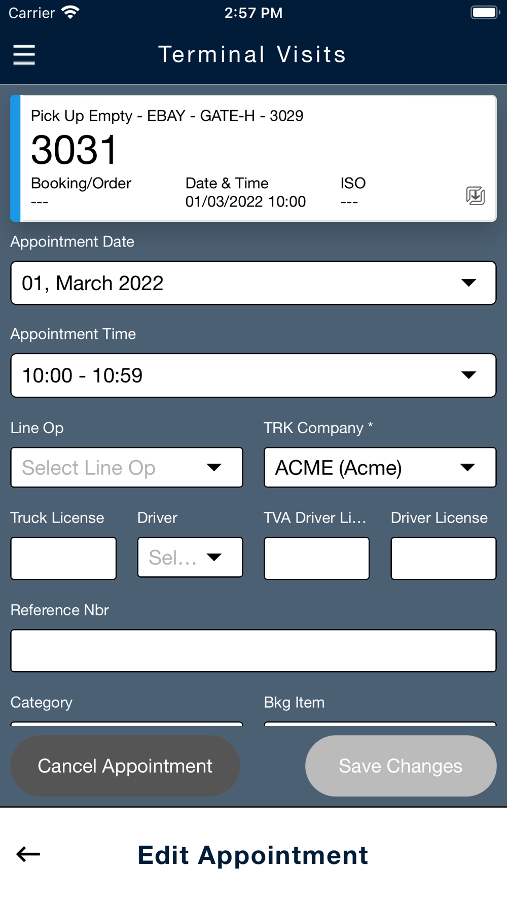 Container delivery time plays a major role when it comes to measuring the performance of a container terminal. Terminal Visits, part of the Navis Smart Mobile Suite, enables your terminal to schedule the arrival of external trucks by allowing trucking companies to create appointments in advance. Terminal Visits not only reduces truck idling time but also increases the productivity and efficiencies at your terminal with accelerated cargo handling.