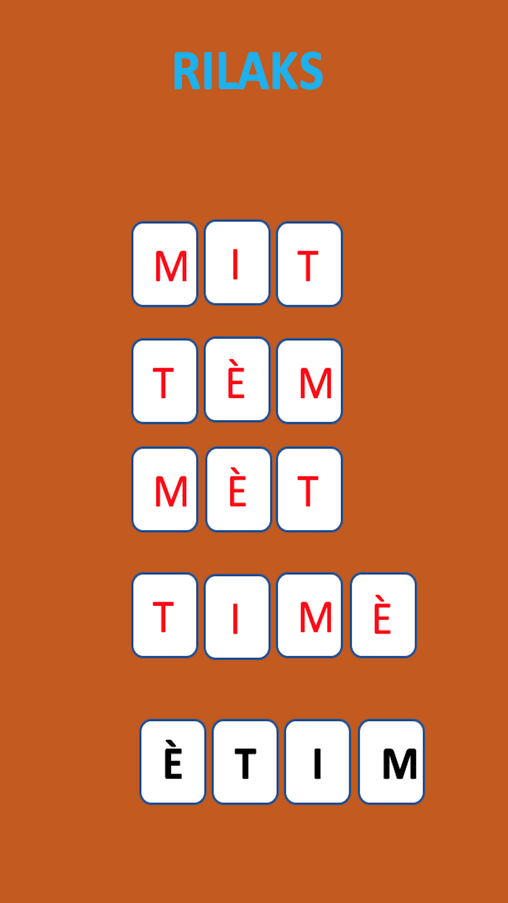 The truth behind this game is that you will experience the true beauty of the Haitian Creole language. Imagine how many creole words you can form with only 3 or 4 letters...