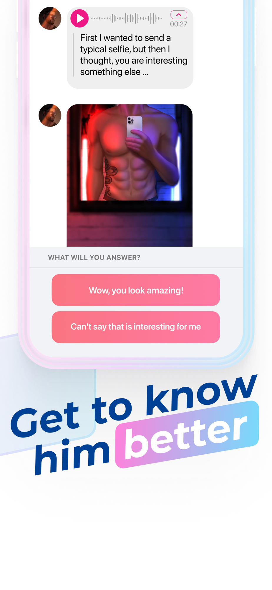 Vox Stories is a mobile chat simulation game. It is a set of exciting stories with ideal companions, who imitate real people. You decide what happens next.