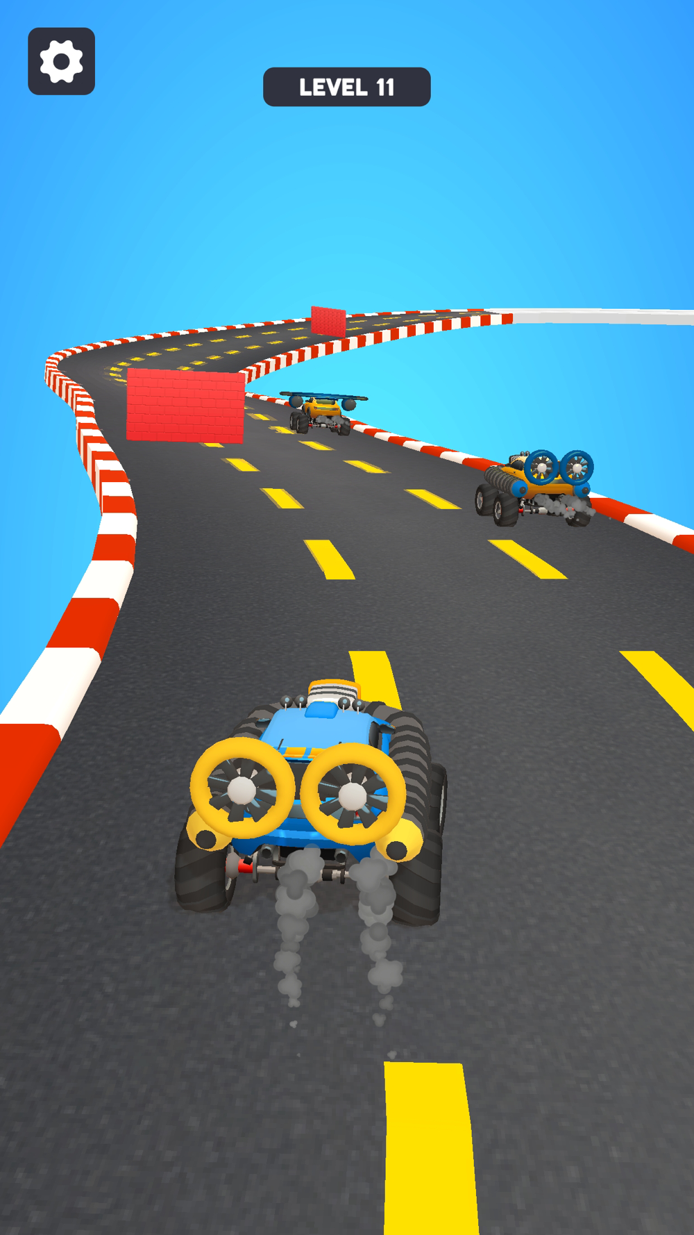 Attach wings to fly over cliffs, or get a bigger engine for the race track