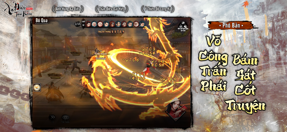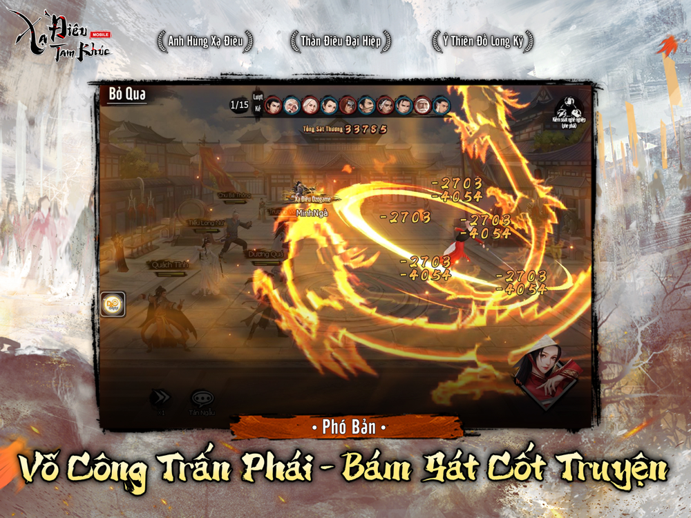 "Xạ Điêu Tam Khúc” tái hiện chân thật cốt truyện của 3 bộ tiểu thuyết kinh điển "Anh Hùng Xạ Điêu", "Thần Điêu Đại Hiệp" và "Ỷ Thiên Đồ Long Ký" với phong cách đồ họa truyện tranh, cho phép bạn tự do phiêu bạt giang hồ trong thế giới kiếm hiệp của Kim Dung, đối đầu hoặc kết bạn người chơi khác để cùng nhau chiến đấu.