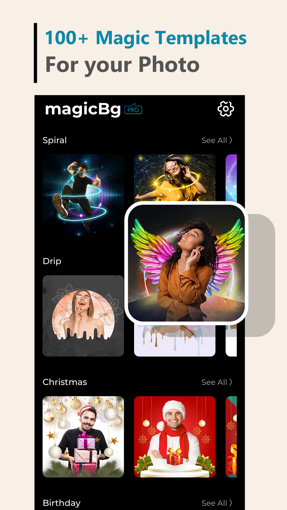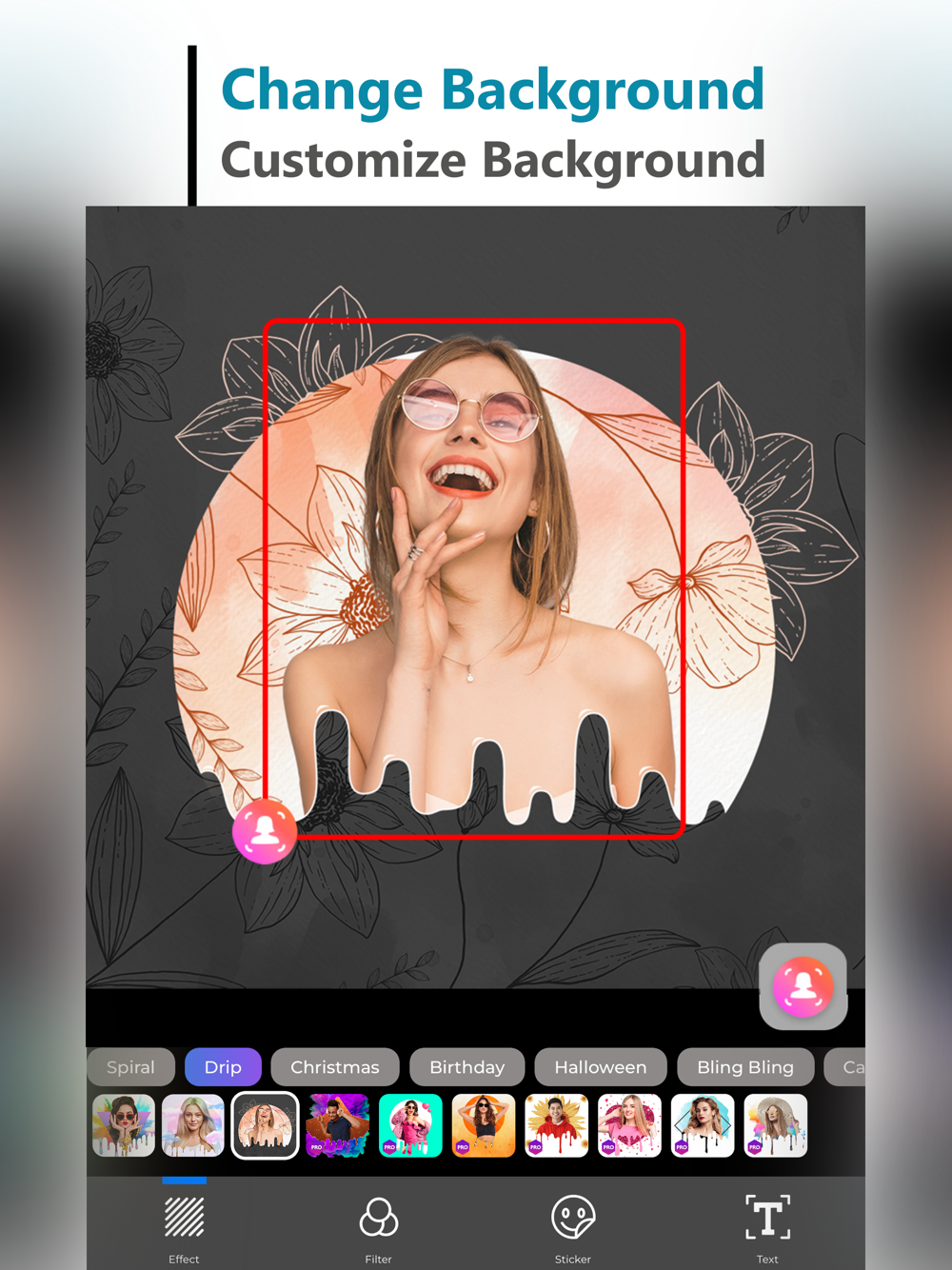 An all-in-one background editor with everything: drip art, neon effect, Christmas effect, spiral effect and many more.
