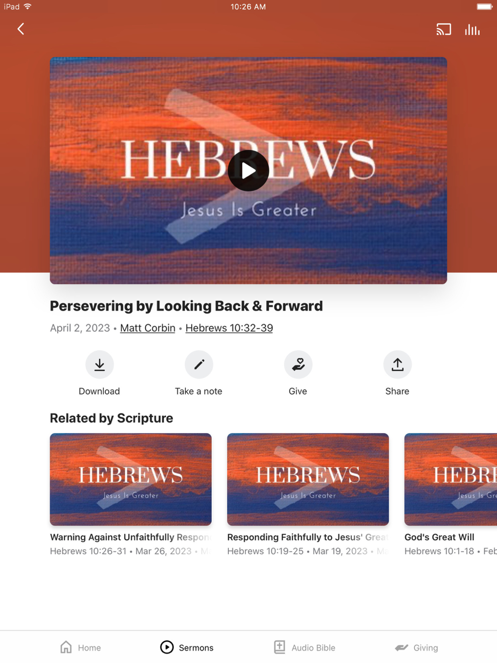 This app will help you stay connected with the day-to-day life of our church. With this app you can: watch or listen to past messages; stay up to date with push notifications; share your favorite messages; and download messages for offline listening.