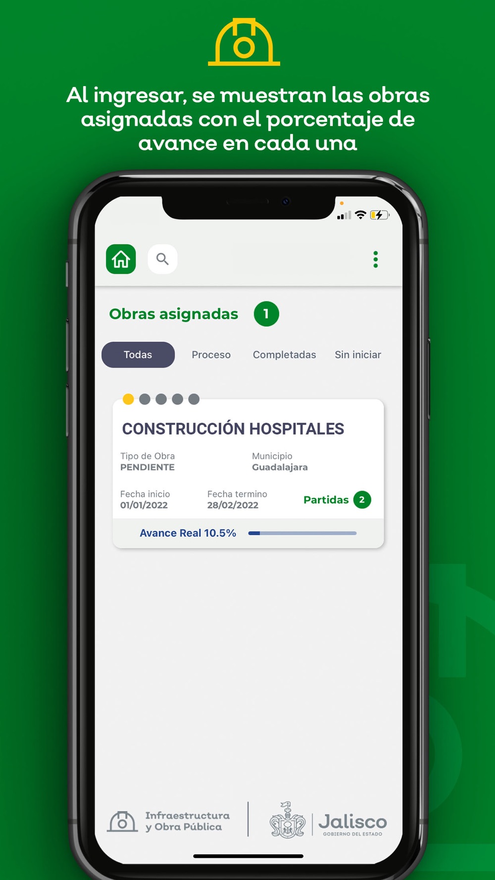 Aplicación auxiliar para el registro de avances de Infraestructura y Obra Pública del Gobierno de Jalisco.