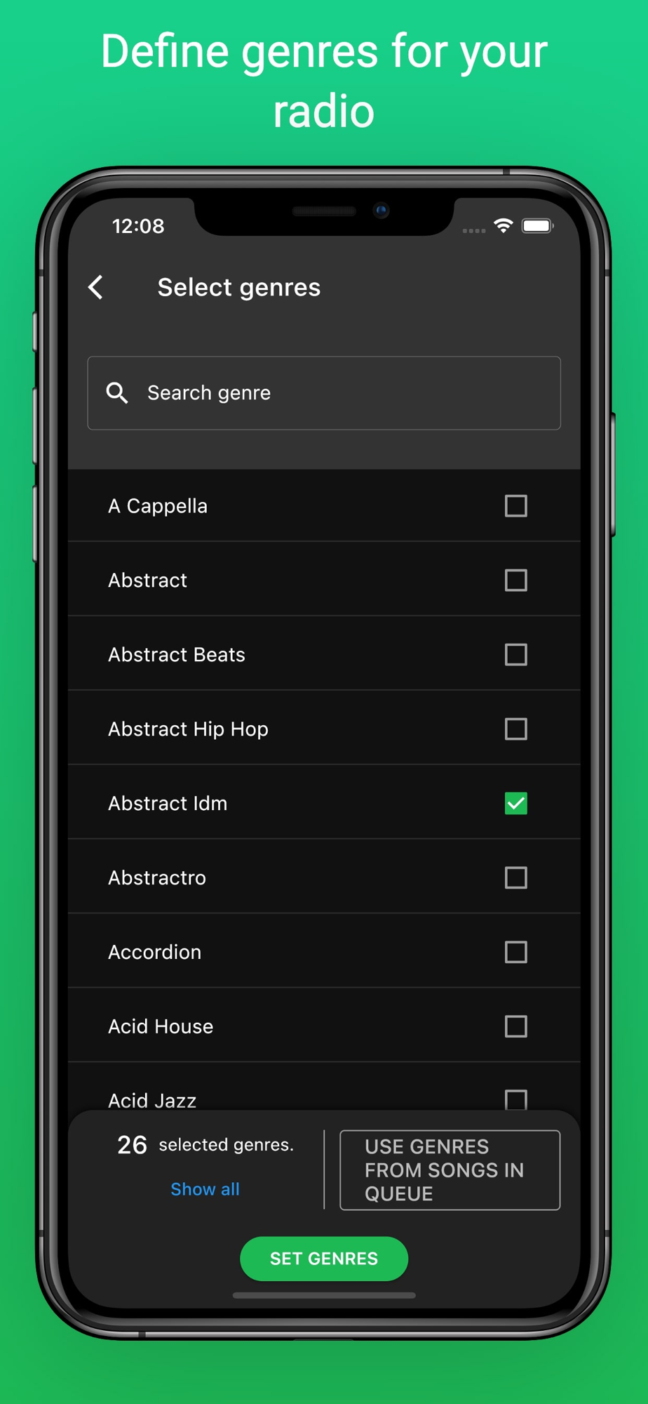 Limit the types of songs that can be added by defining a set of genres for you radio. In case you only want Classic Rock songs in your radio session.