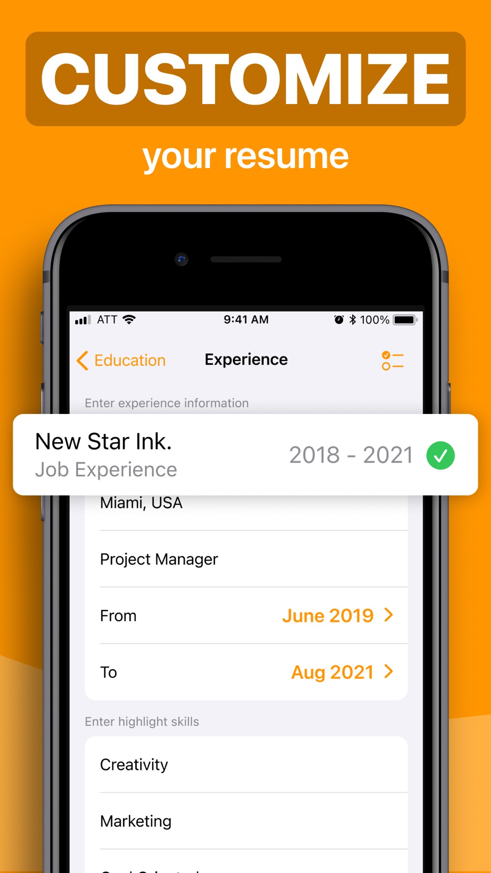 - Create unlimited resumes, one for each company if you want