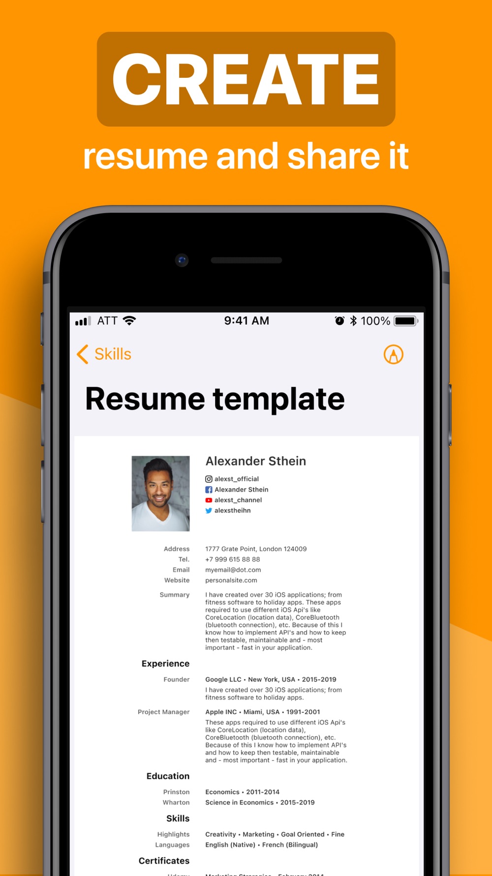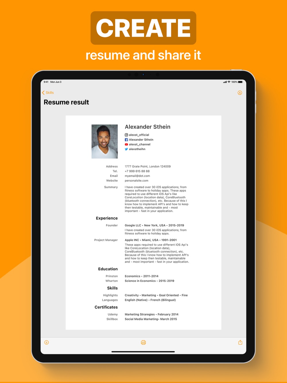 Resume Builder app has a full feature set with everything you need: