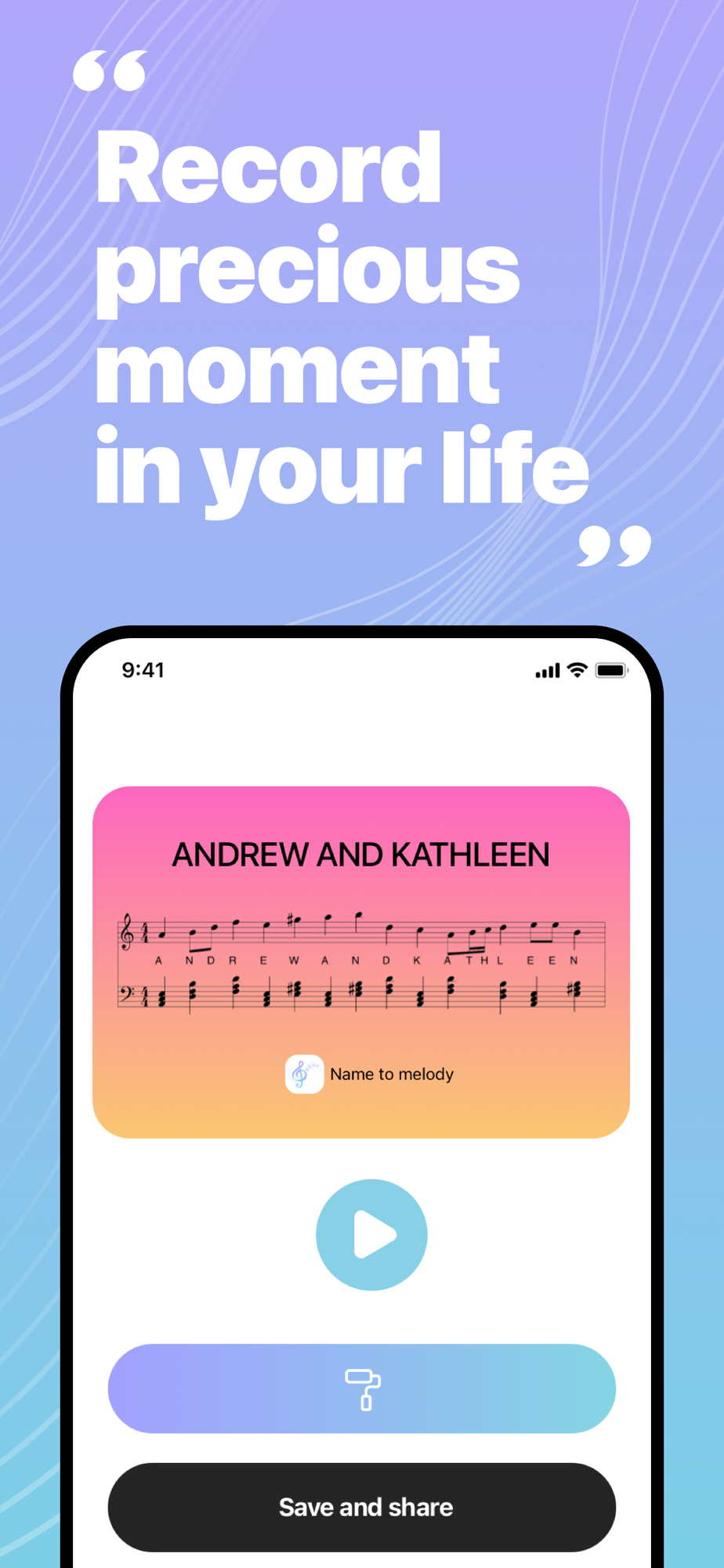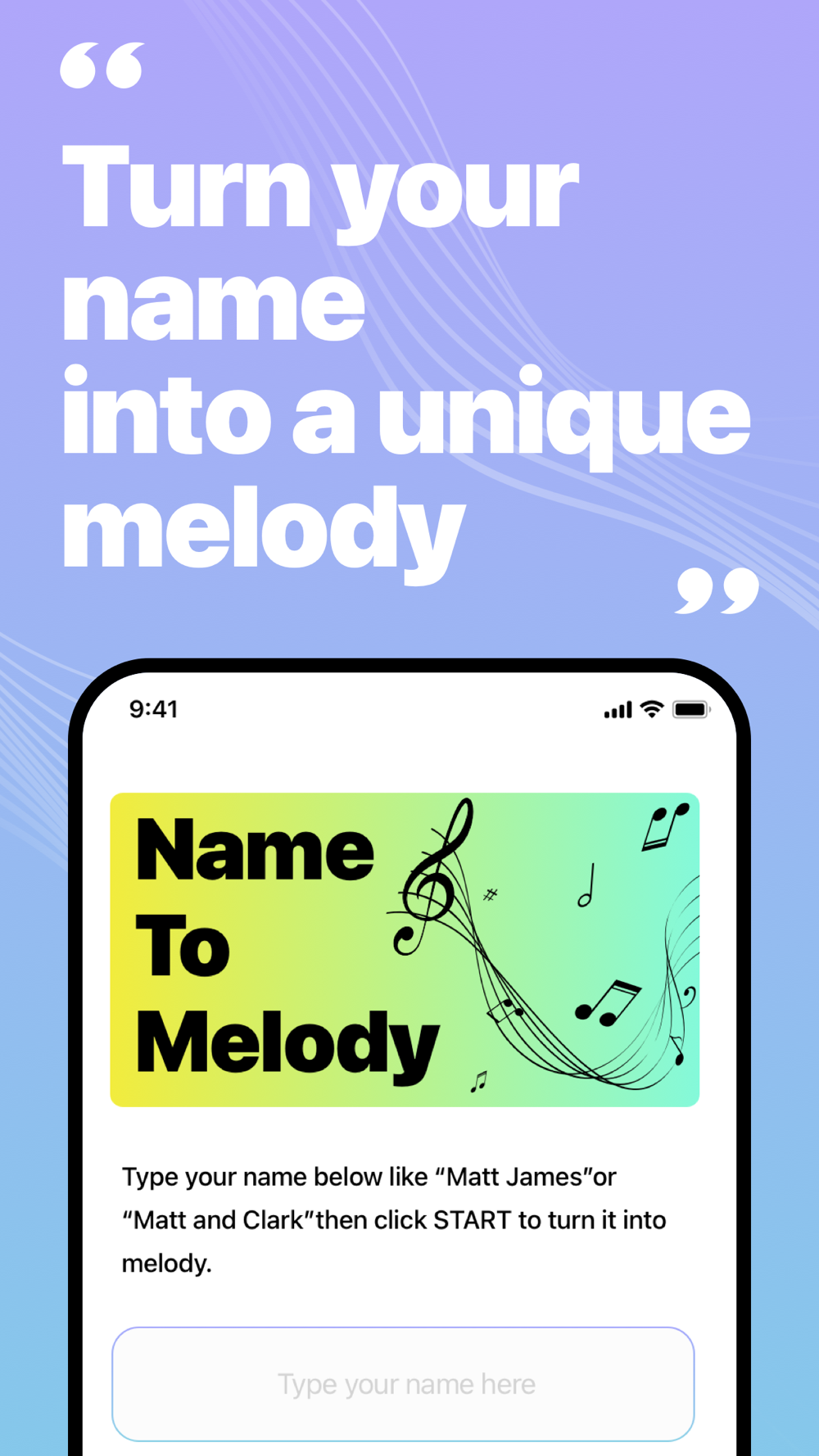 Name to melody is the world first app that could turn your name or your loved one's name into a unique melody. You can also print out the sheet music and make a photo frame for your loved ones. They will treasure forever. This distinctive token makes the perfect gift for any occasion. Come and download it now!