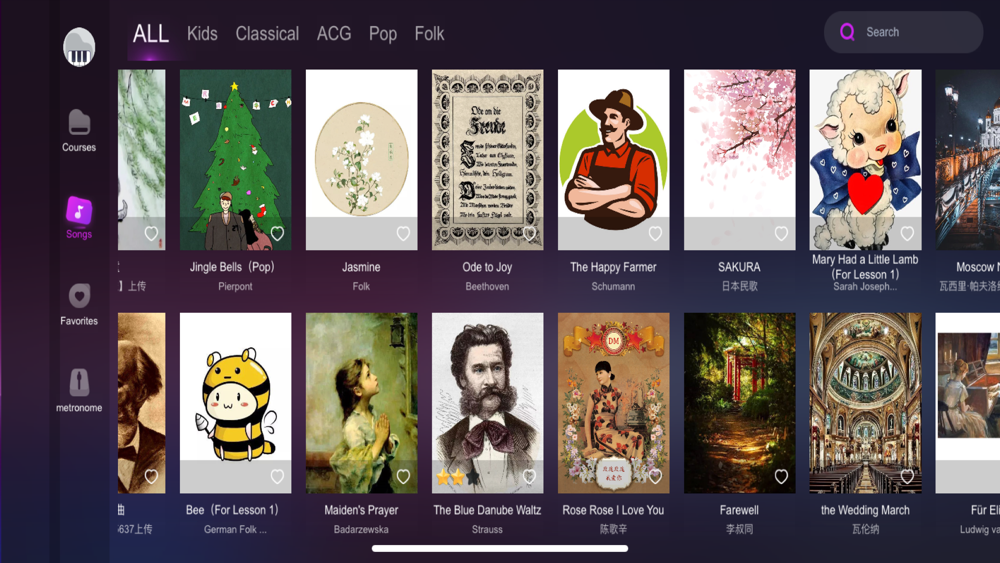 -Different levels of difficulty, for the same song, we have different levels of difficulty for learners at different stages to practice;