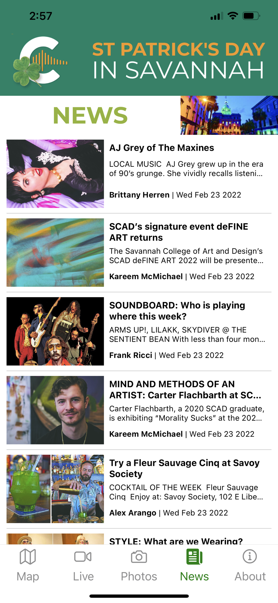 The official app of St. Patrick's Day in Savannah from Connect Savannah. Full of features like news, live streams, key locations, and fun photographs, this is the only app you'll need to get the most out of the Hostess City's biggest holiday.