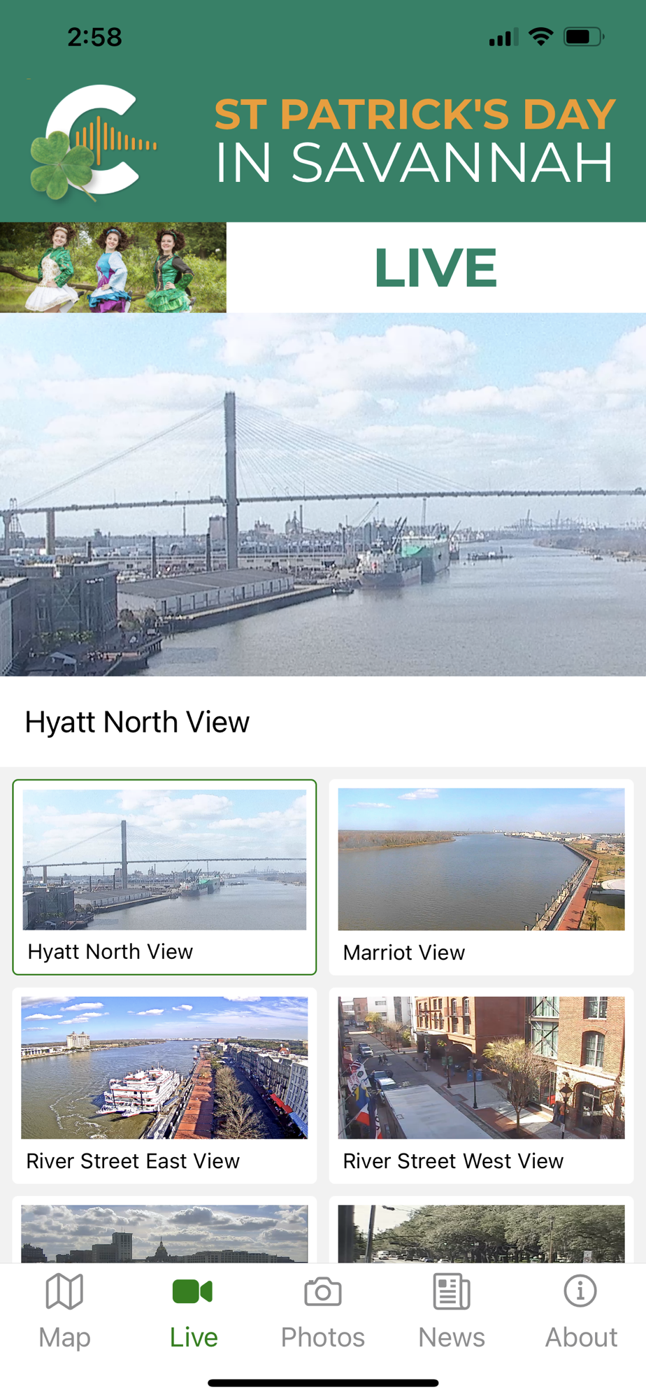 Check out different parts of downtown Savannah before you make a move, get a better view of the parade, or just take in a beautiful shot of the Savannah River with our live cams feature.