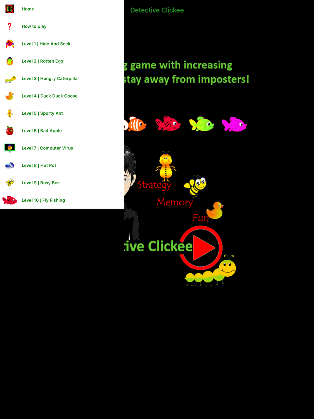 This app is suited for all ages. If you enjoy playing guessing games this is the game for you. In this game you will be Detective Clickee and your mission is to earn as many points as you can by clicking on game objects. Clicking on an imposter will end your game.