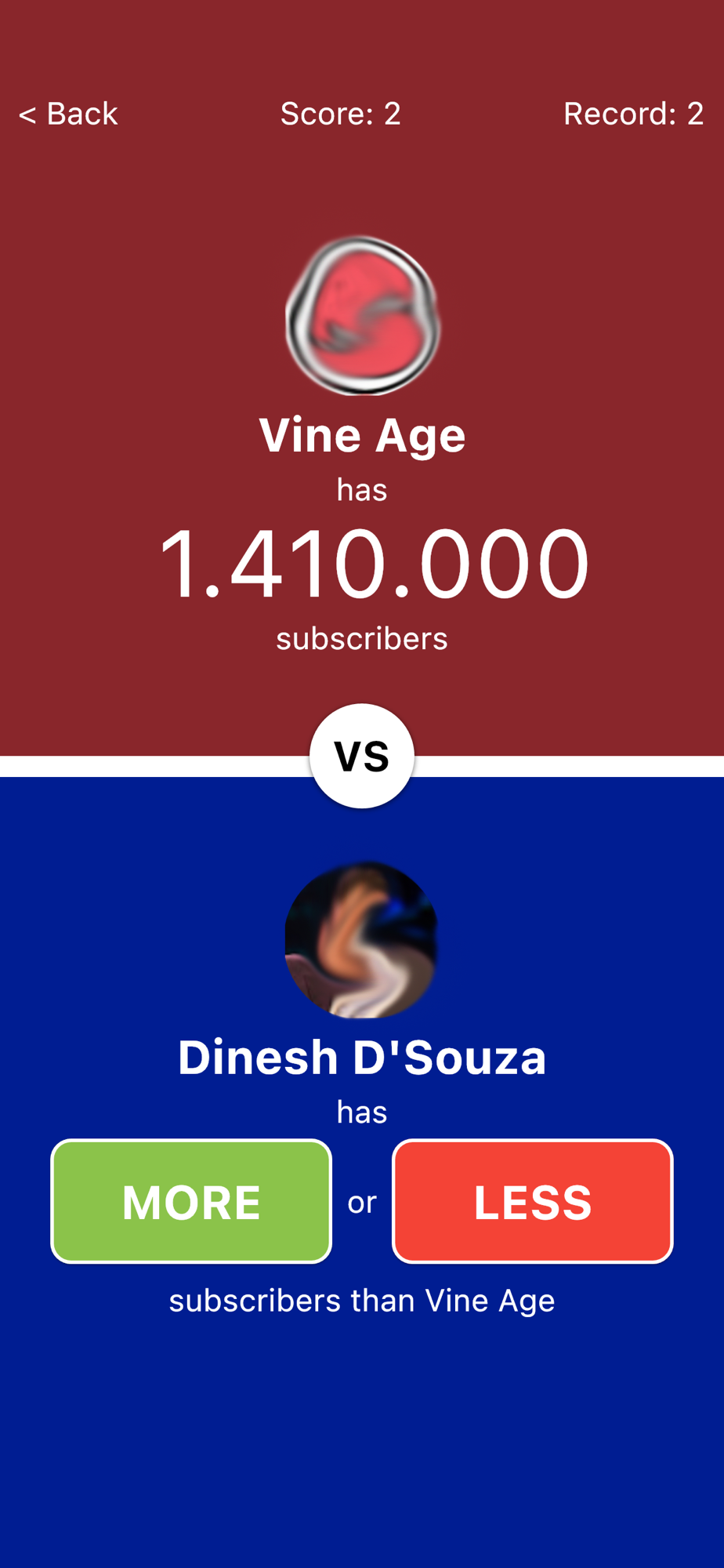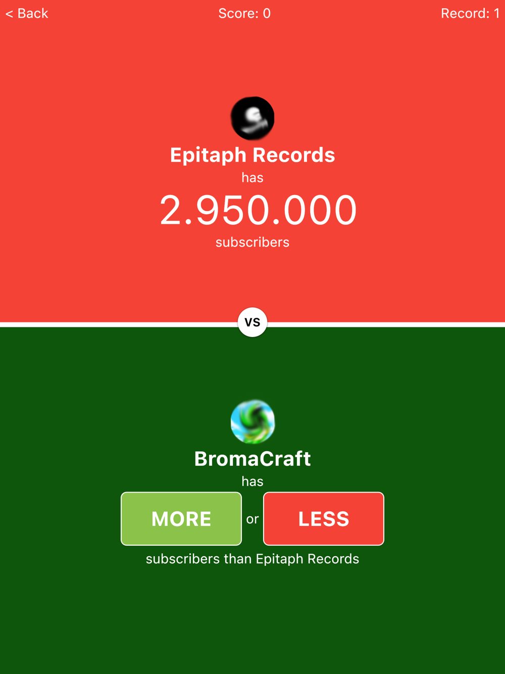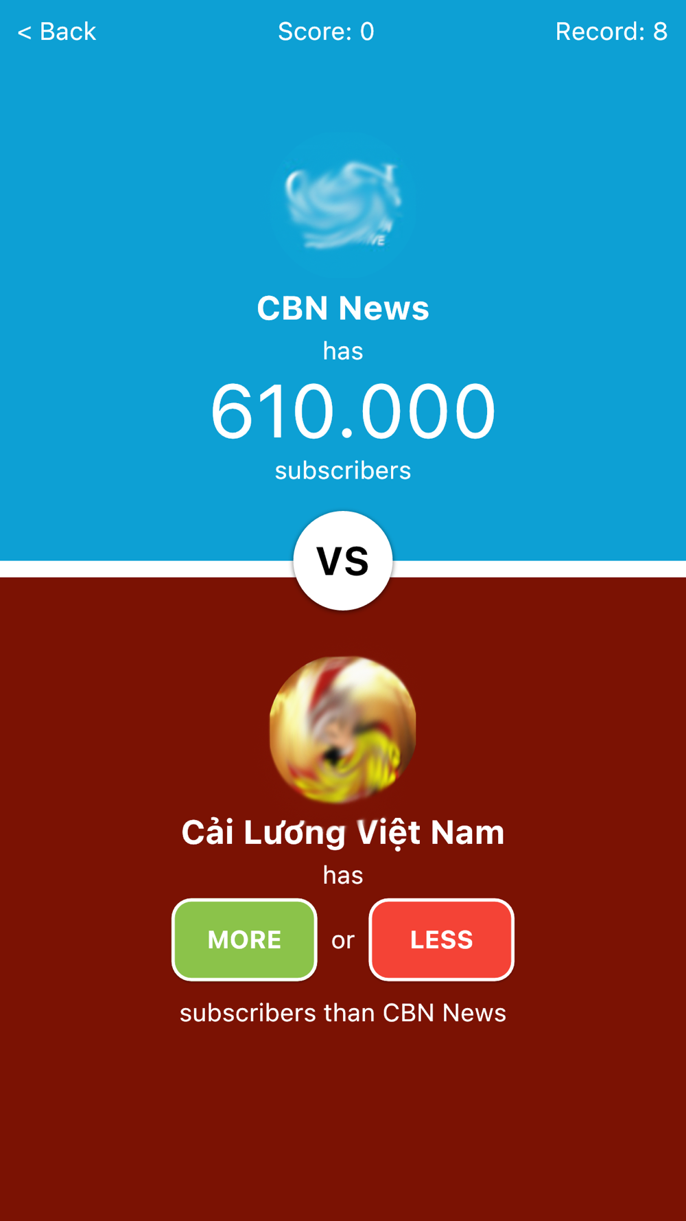 To play it is very simple, just select which channel has more or less subscribers. The goal is to get as many comparisons right.