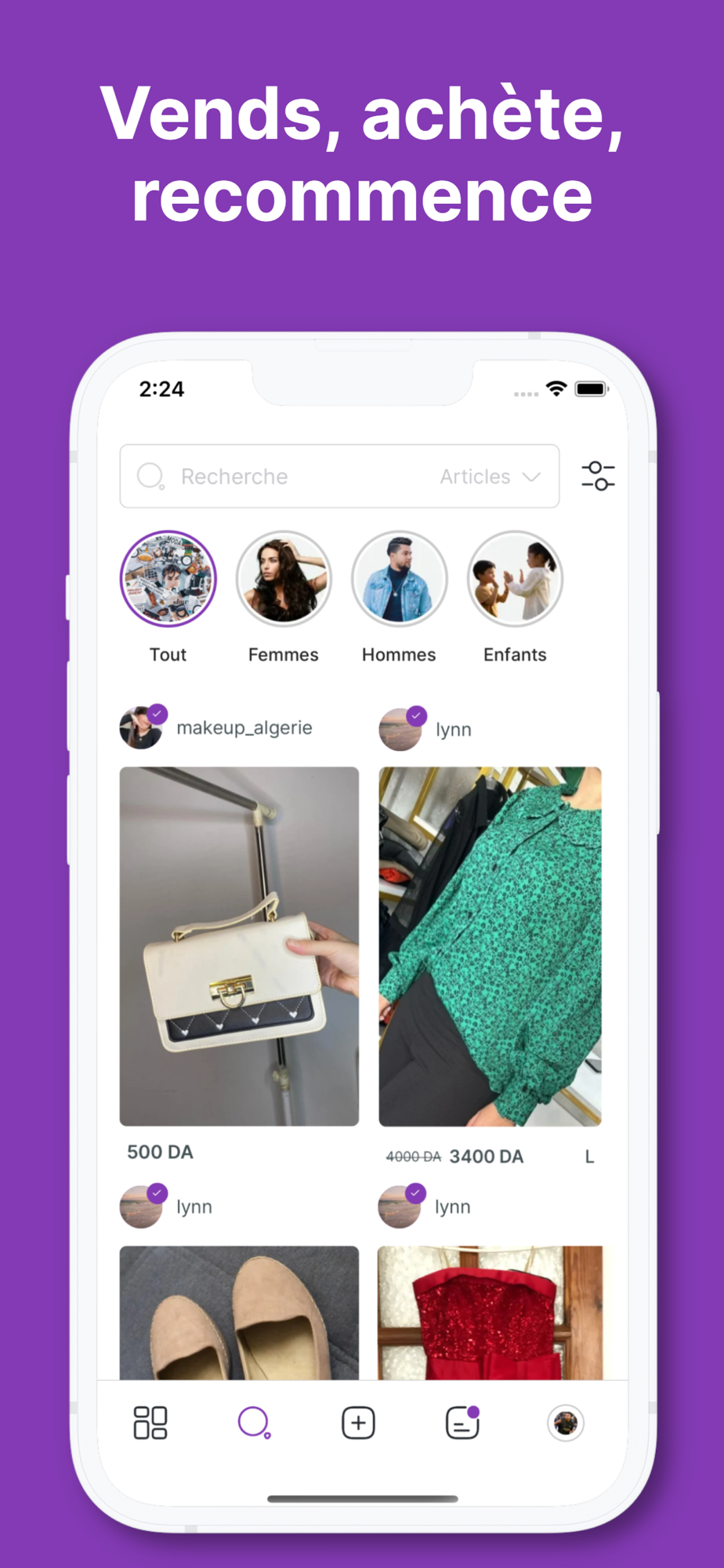 Vends. Achète. Recommence. Nous ramassons, livrons et déposons ton argent sur ton compte directement via l'applicaion. Tellement sahla que même ta grand-mère peut vendre.