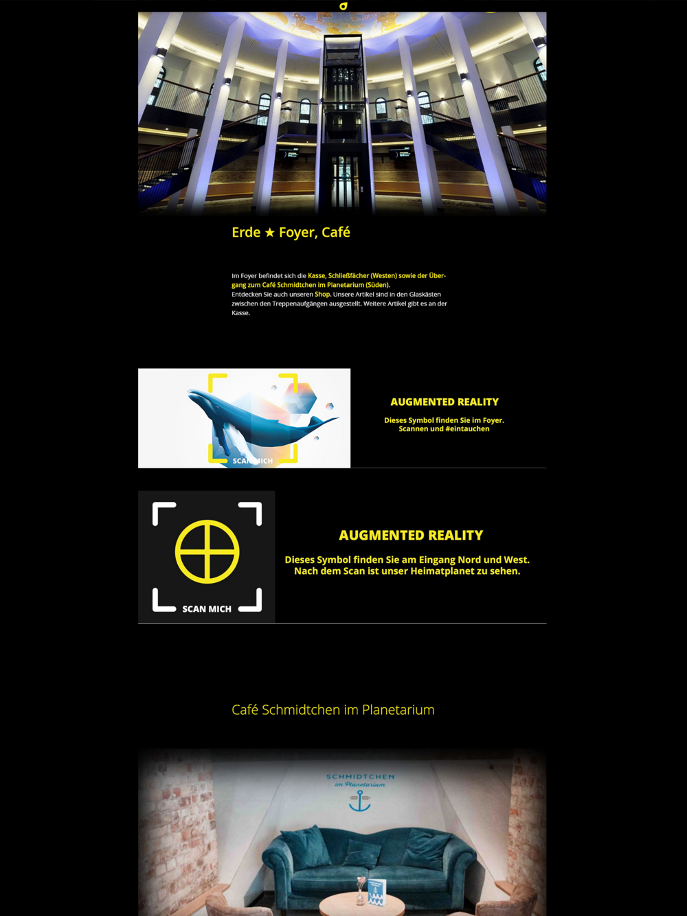 The app tells you where you can find the AR objects. They are spread all over the tower. It's very simple: Click on the corresponding link in the app - scan the floor (every AR app needs it for spatial orientation) - when the square appears, scan the corresponding symbol. Now the object hovers over, next to or in front of you. Discover planets, peak through our walls or take a picture of yourself with the Hubble Space Telescope.