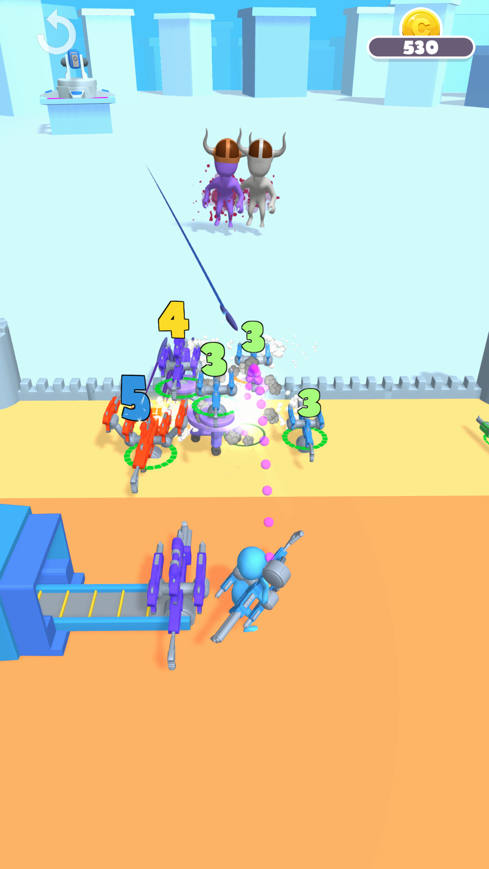 Merge your weapons to earn bigger weapons ! Use them on enemies !