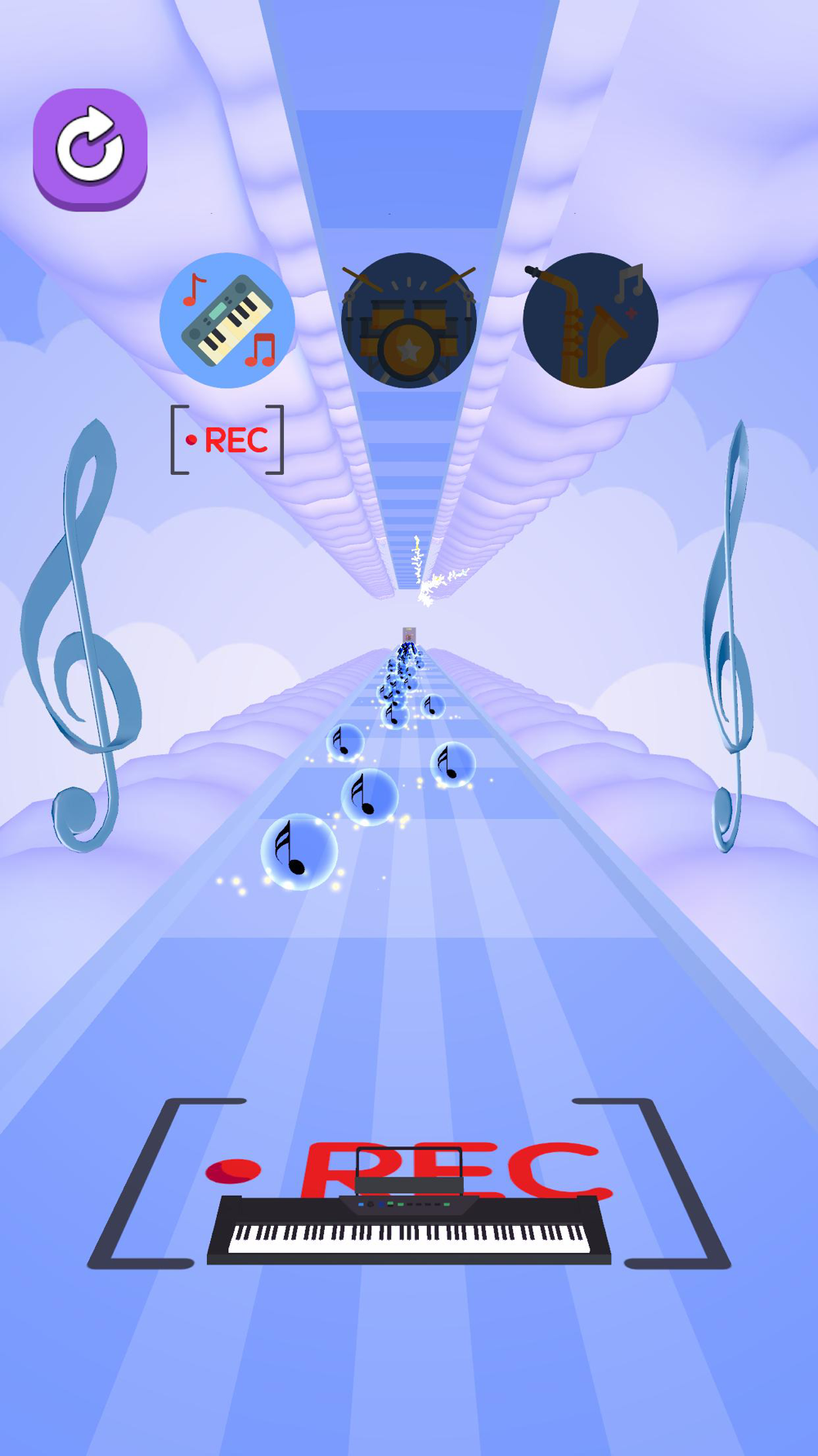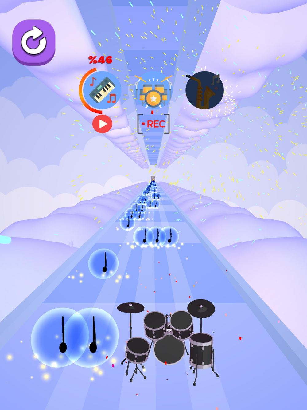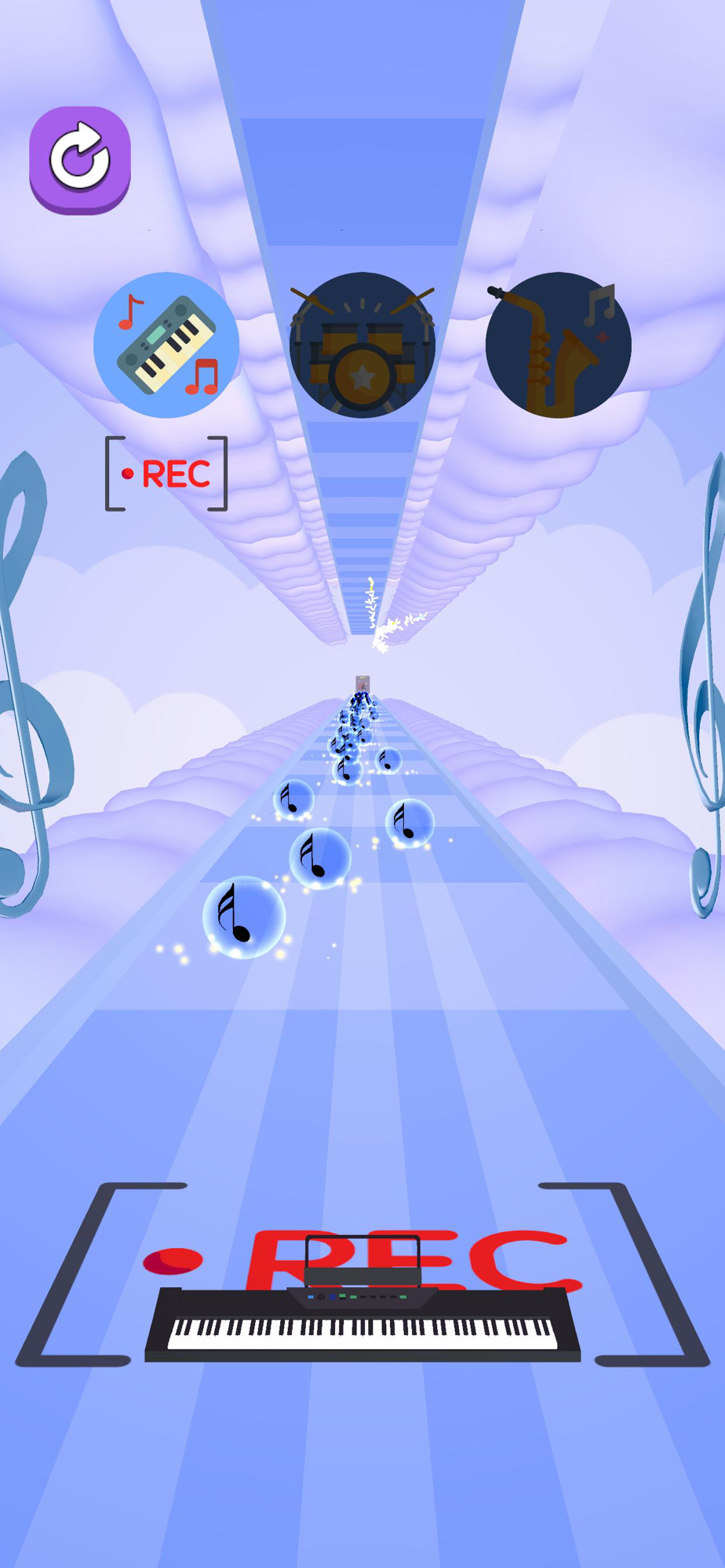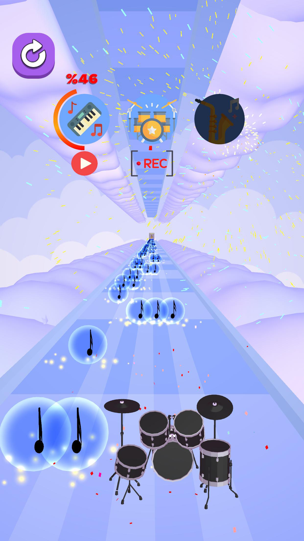 Complete each layer of instrument by collecting the notes.