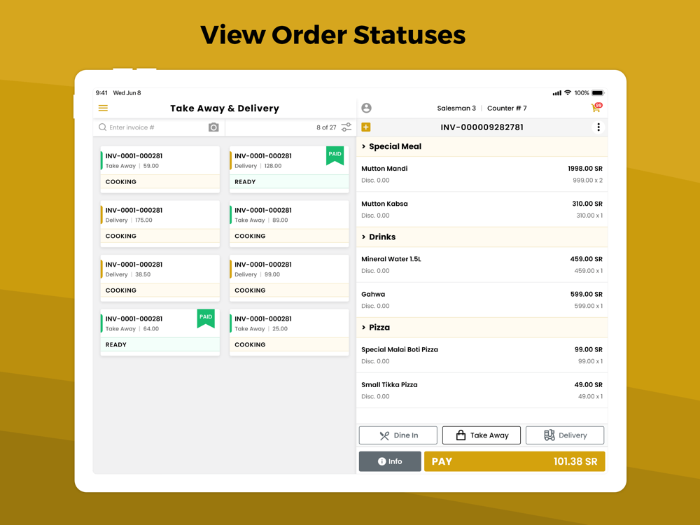 • The app allows you to process orders quickly in real-time, unlike conventional methods. It can help you avoid long queues.