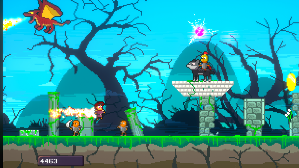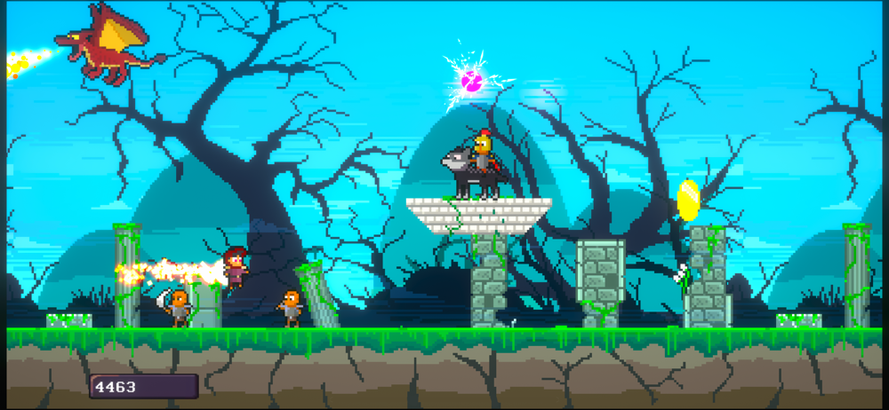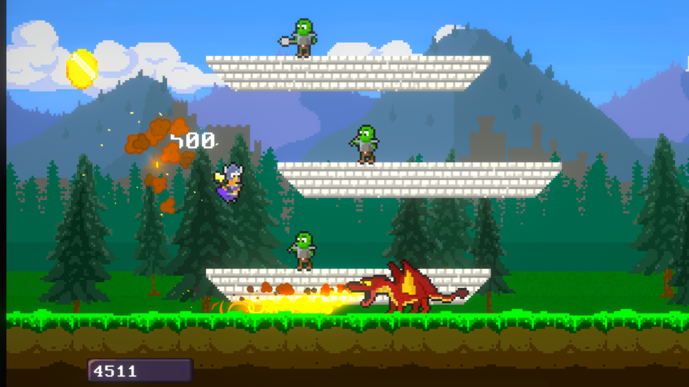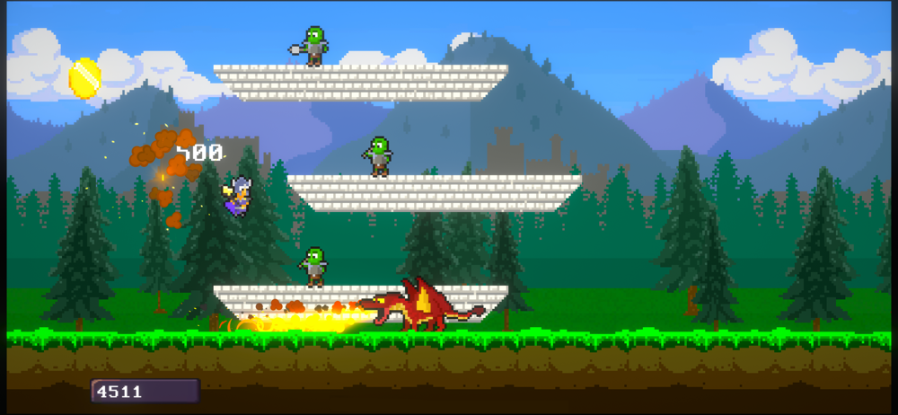 Run Jump Go is a fantasy-themed endless runner with pixel art graphics. Your character can jump by tapping the left button. To attack, tap the right button. Attacking also causes your character to lunge forward, and it can leave you vulnerable if you do not time your attacks well.