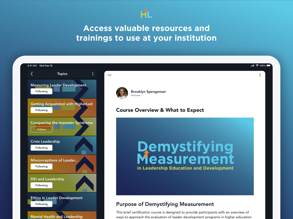 HigherLed is a learning network that creates the conditions for continuous improvement in the areas of leadership education and development (LED) in higher education to help create more and better Leaders for our society.