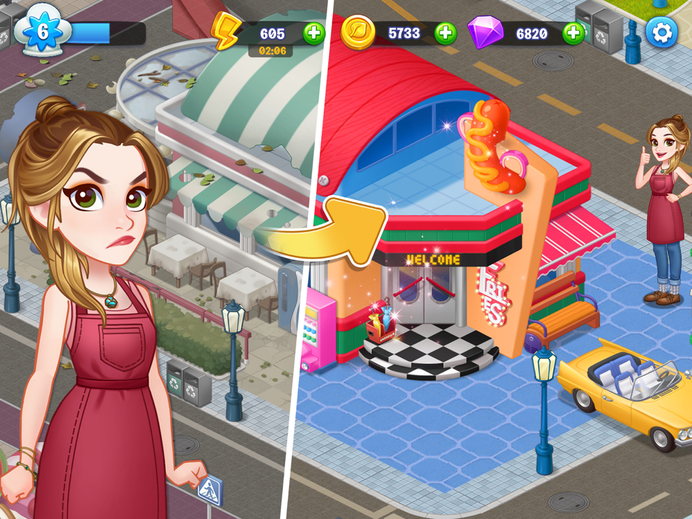 Decorate your restaurant - combine food, serve your customers and you can earn coins! Let's renovate an old room together, you can choose a variety of furniture for your room. Decorate different styles of rooms and experience different delicious food!