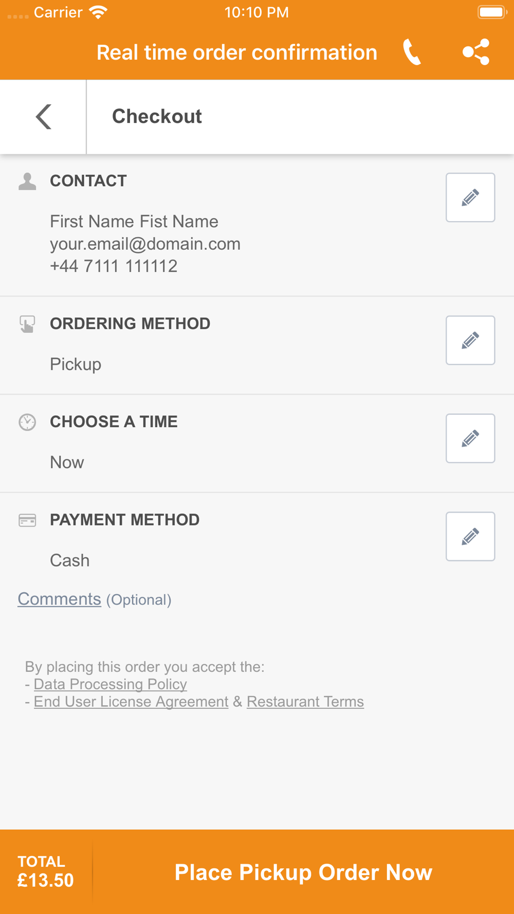 6. Get instant delivery time or collection time on screen once you submit your order.