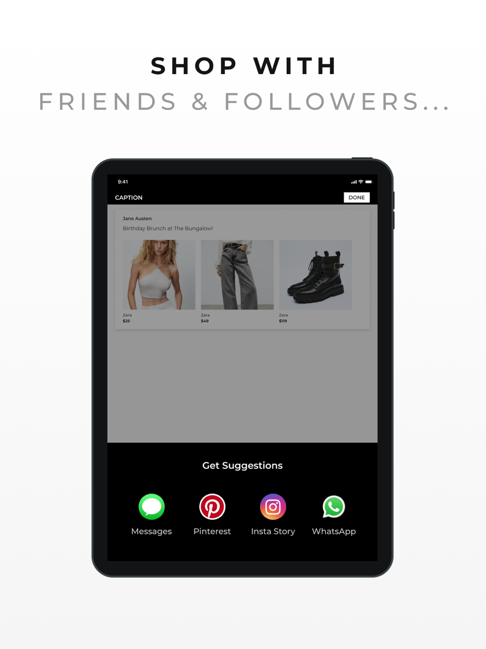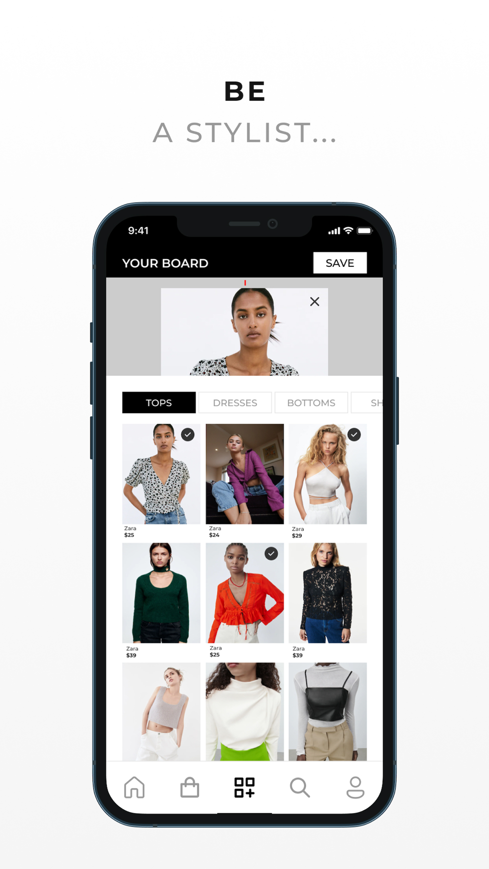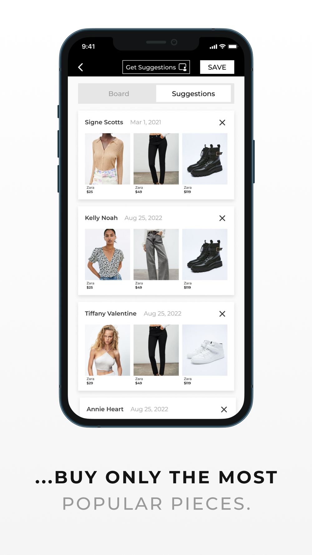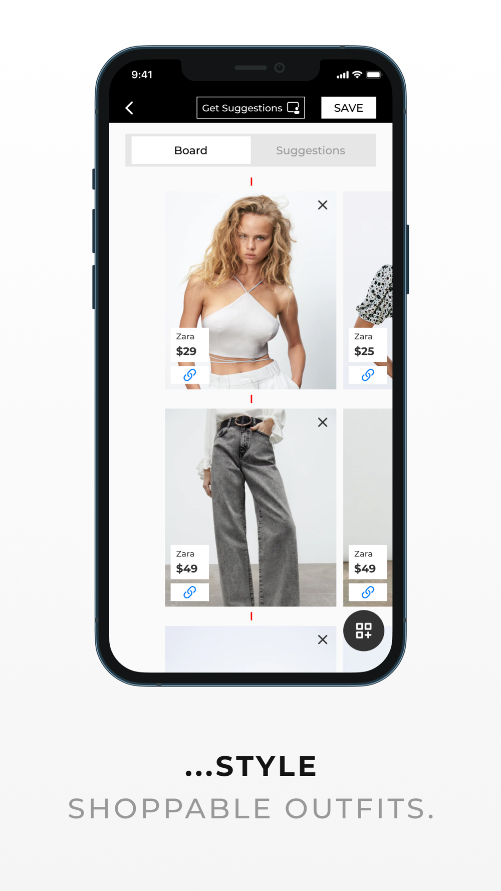 Our integrated board tools allow you to easily add, remove, save and share outfits without leaving the app.