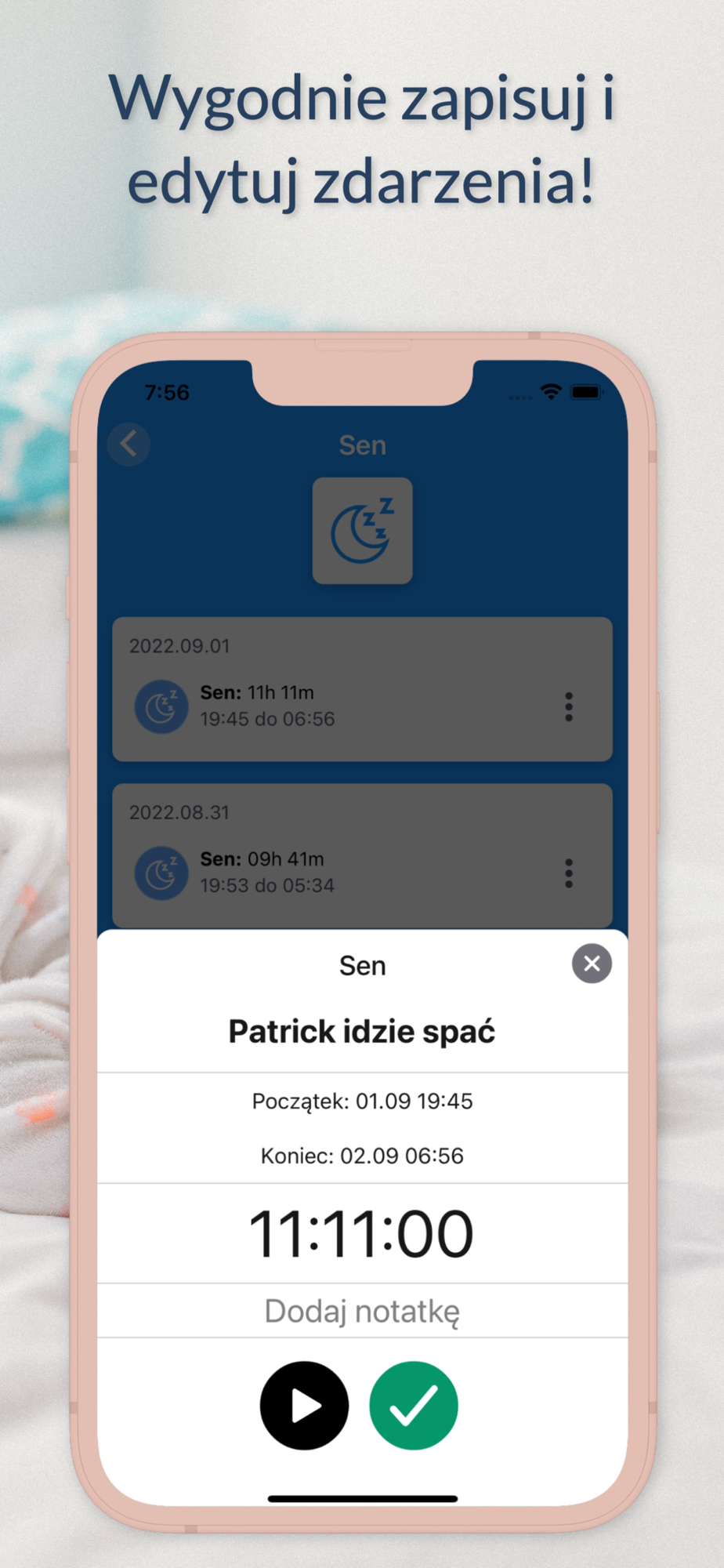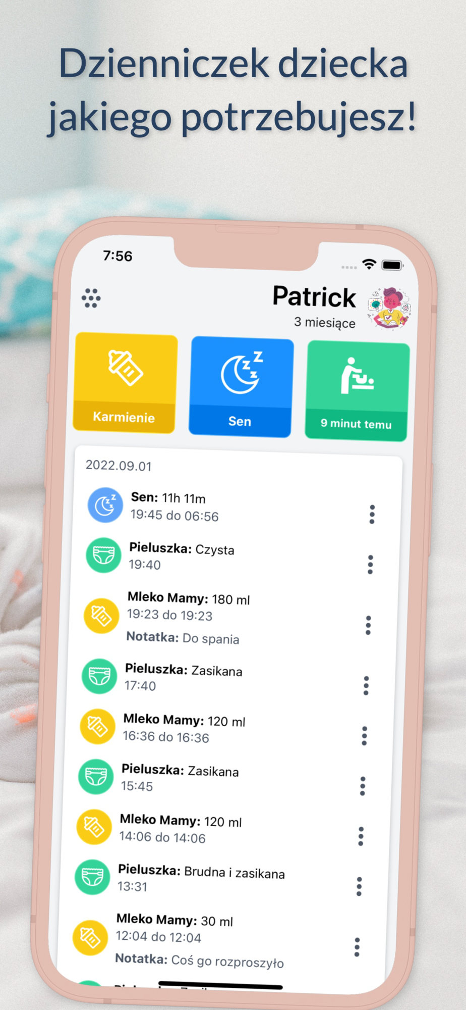 * Chcesz wiedzieć kiedy twój partner ostatni raz zmieniał pieluszkę lub położył maluszka na drzemkę (współdzielenie konta z partnerem już wkrótce)
