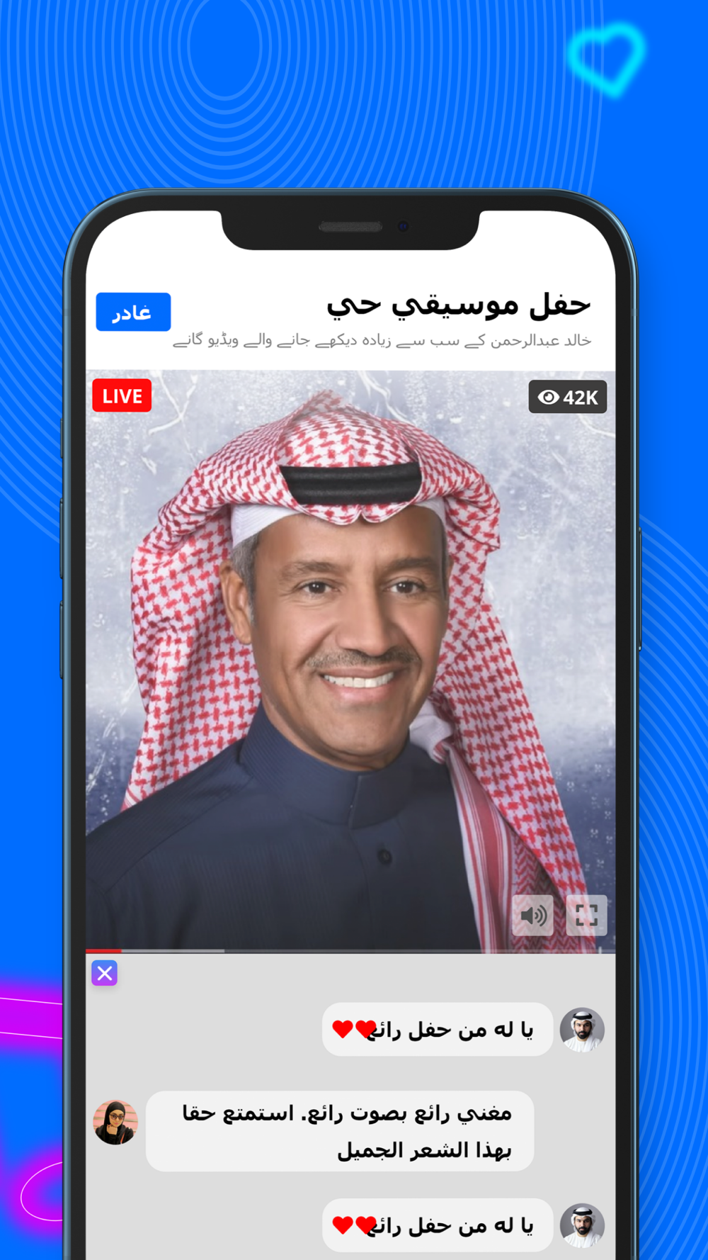 Download the KAD App to listen to the latest Khalid Abdulrahman's songs, videos. The app has an inbuilt radio with 24/7 new programs. Watch live concerts of Khalid and get latest updates.