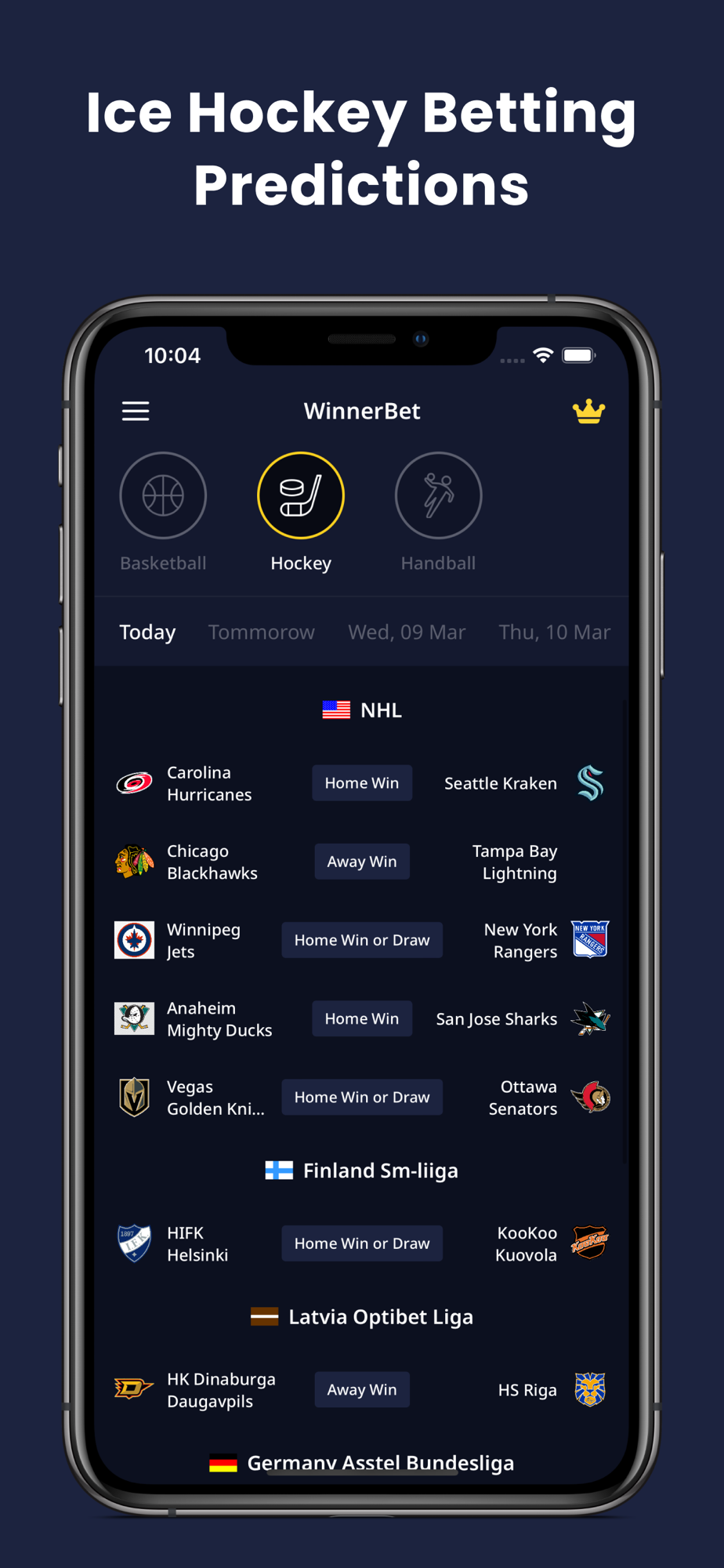 WinnerBet is an essential betting app for all serious bettors who like to bet on Basketball, Ice Hockey, and Handball. Increase the odds of your wager with us. We cover games organized by leagues from around the world.