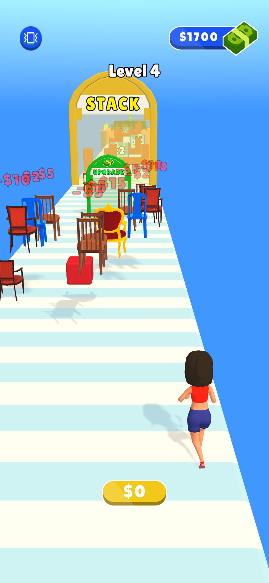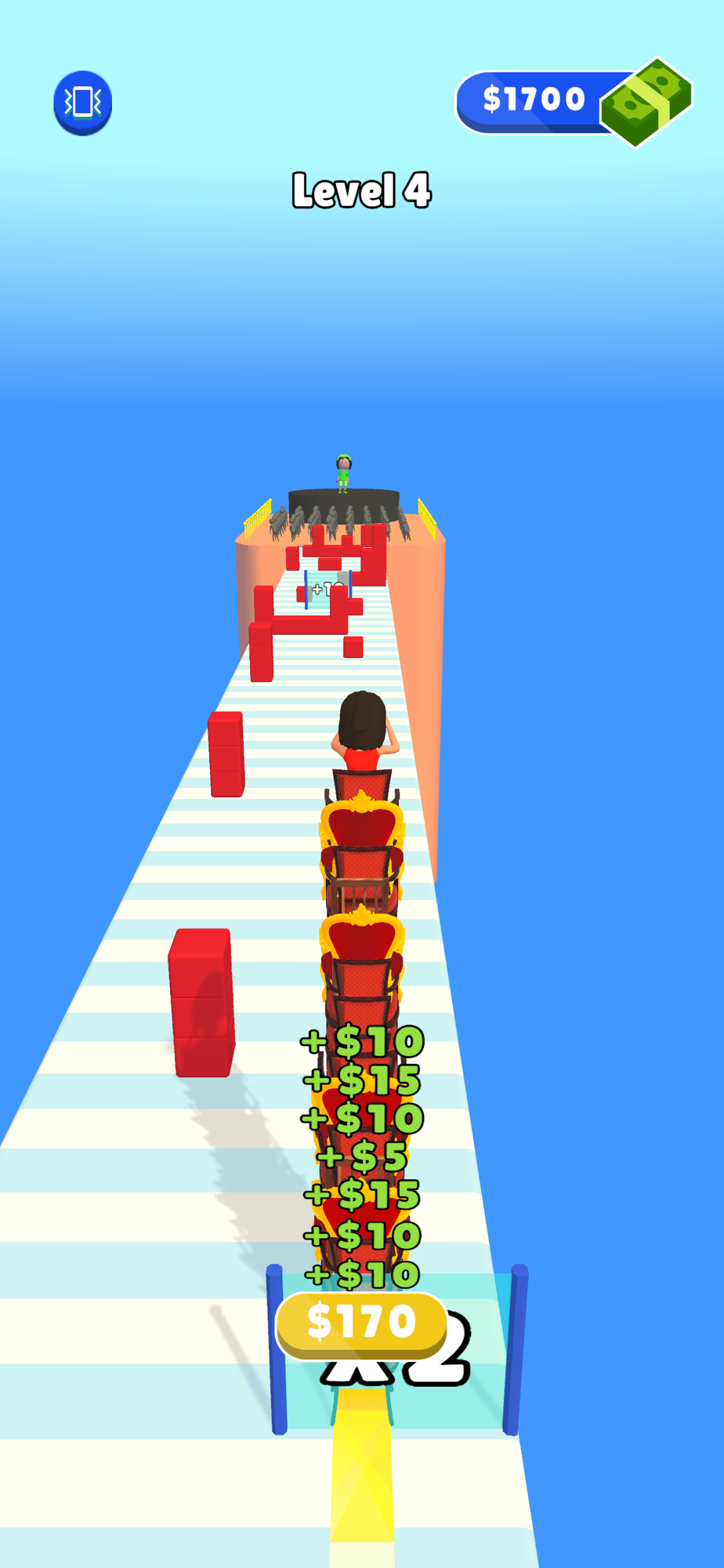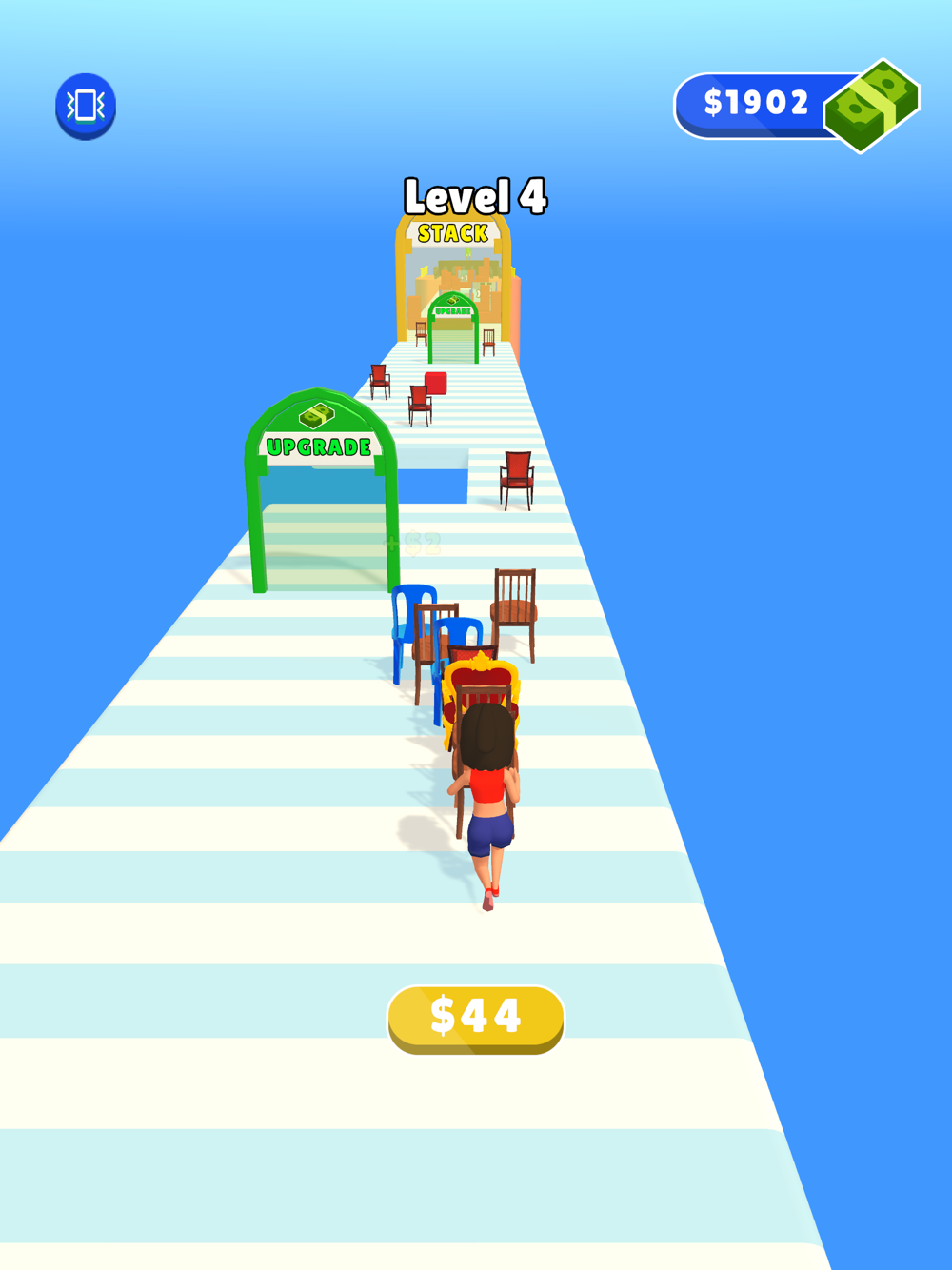 Slide your fingers right and left to collect and stack the chairs! Upgrade the chairs to make more money.