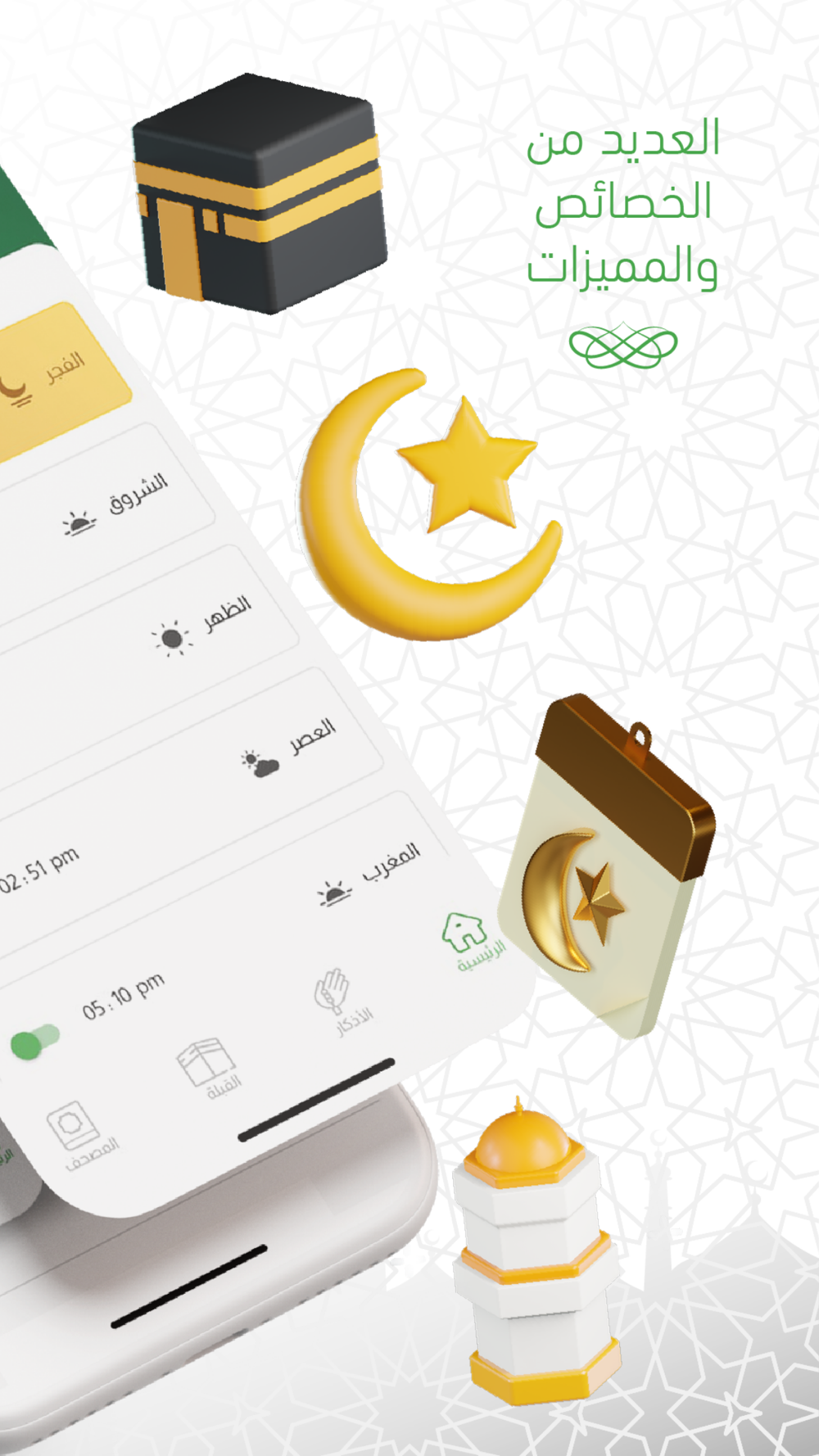 * البرنامج يحتوي على بوصلة إتجاه القبلة نحو الكعبة المشرفة.
