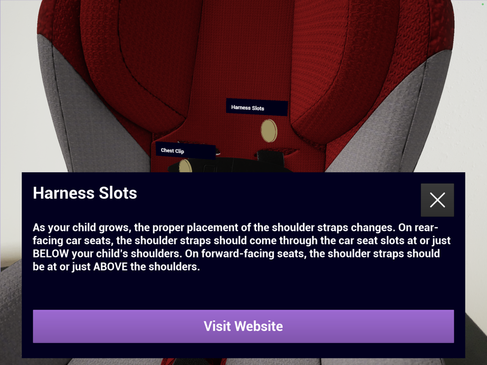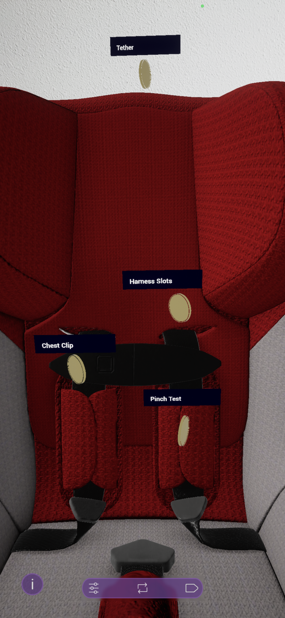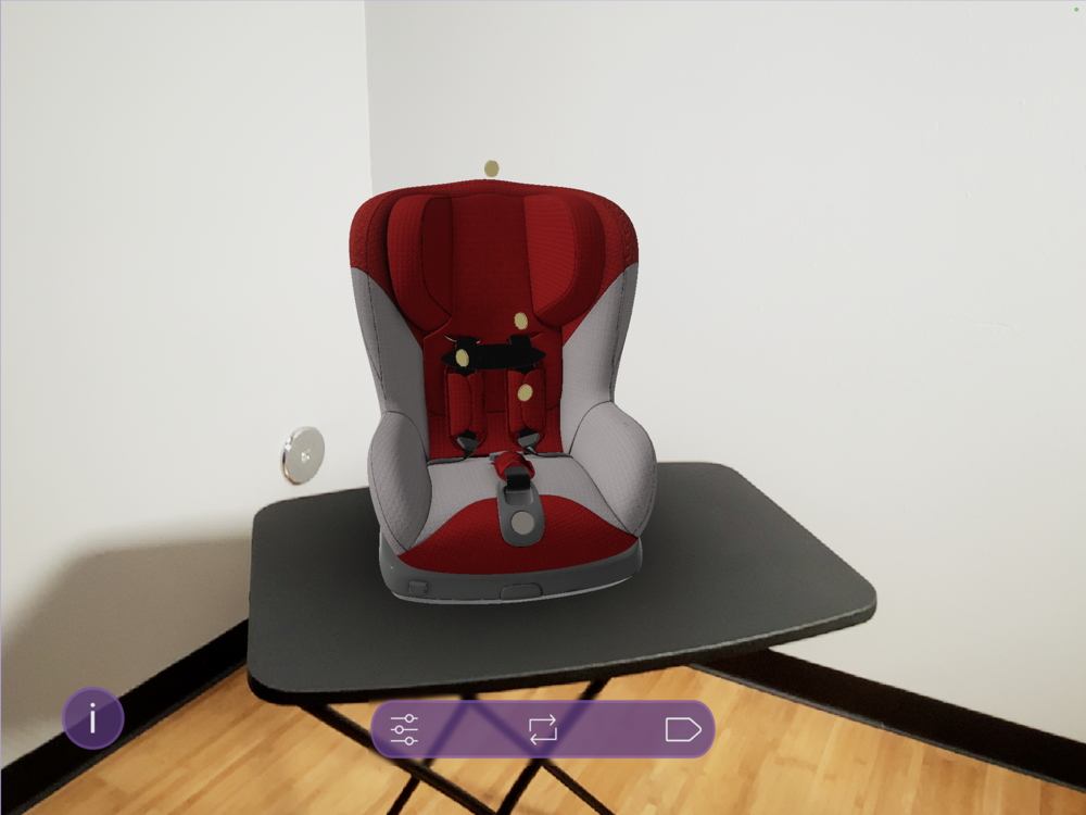 Car seats save lives and greatly reduce injury. Regular car seat checkups and ensuring proper fit along with growing adjustments are important in keeping children safe in cars. Enjoy an educational and entertaining way to understand the various safety features of a 5-point harness through your smart phone. We use your device's camera to display a virtual car seat in your real world space.