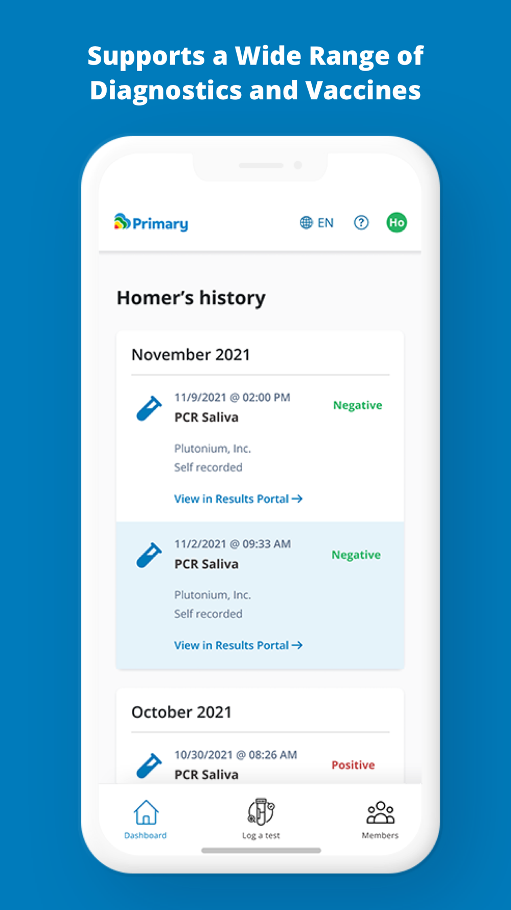Record diagnostic test results, keep track of your immunizations, and manage your dependent's data with your Primary.Health account.