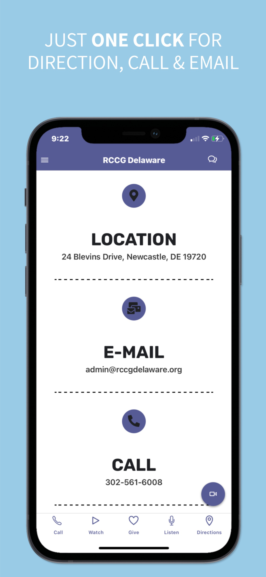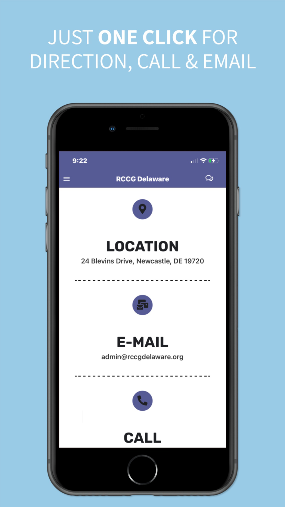 - Get directions, call, or email the church office