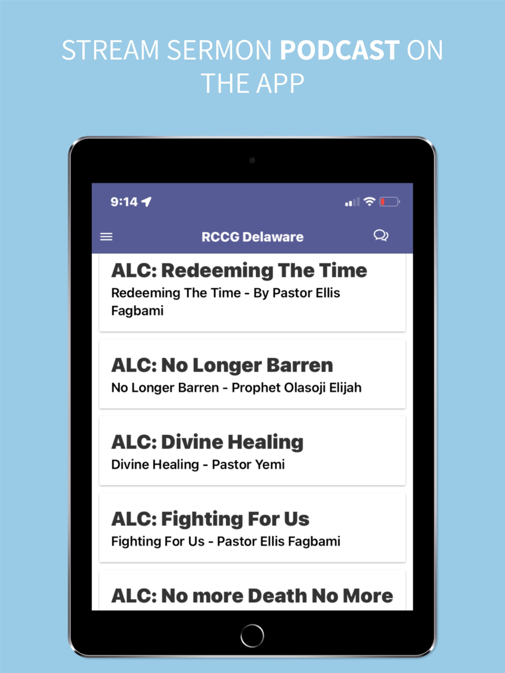 The Redeemed Christian Church of God (RCCG) Abundant Life Center is a multi-national, multi-cultural Church which started in Delaware in March 2000.
