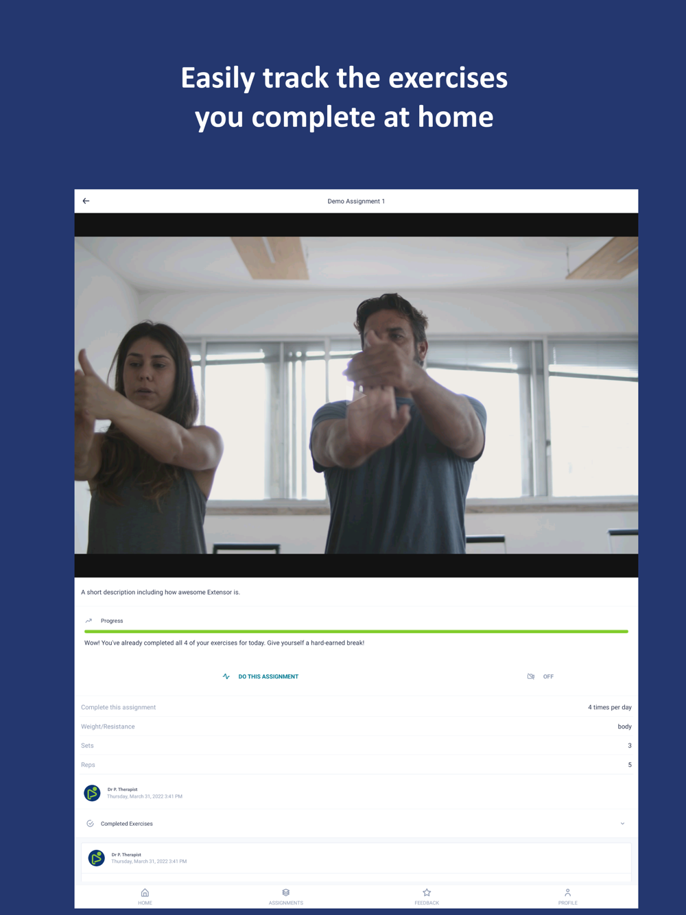 Get help from your physiotherapist when and where you need it the most. Extensor gives your therapist a range of tools, so that you can: