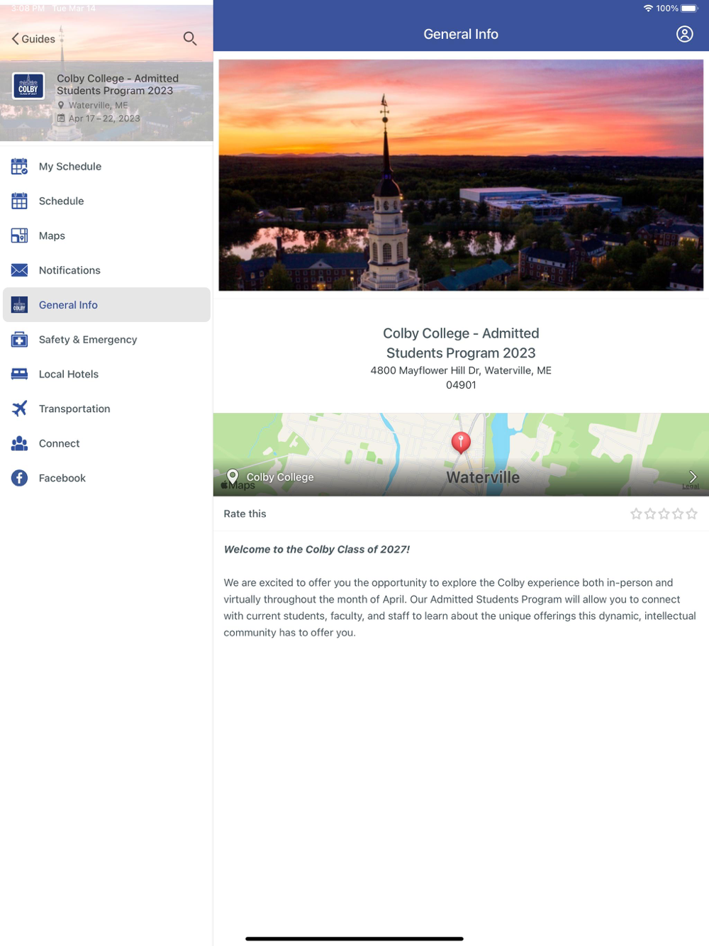A full guide to Colby's Admitted Students Program for the Class of 2027! Explore both in-person and virtual offerings, build your own schedule, and connect with future classmates all through our Guidebook app.