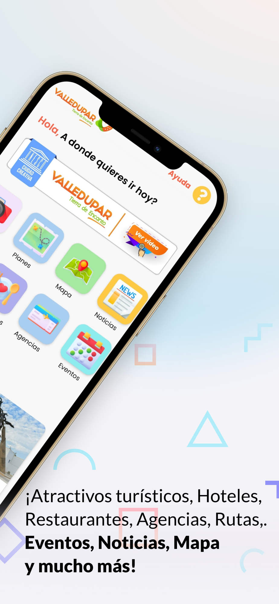 A través de ella podrás acceder a toda la información turística relevante como Atractivos turísticos (Sitios emblemáticos), Planes (¿Qué hacer?), Guía de Eventos, Noticias turísticas, listado de Establecimientos (Restaurantes, Hoteles, Agencias de viaje), Mapa con georreferenciación desde tu ubicación. Además podrás comunicarte fácilmente con las diferentes secretarías y oficinas del municipio de Valledupar.
