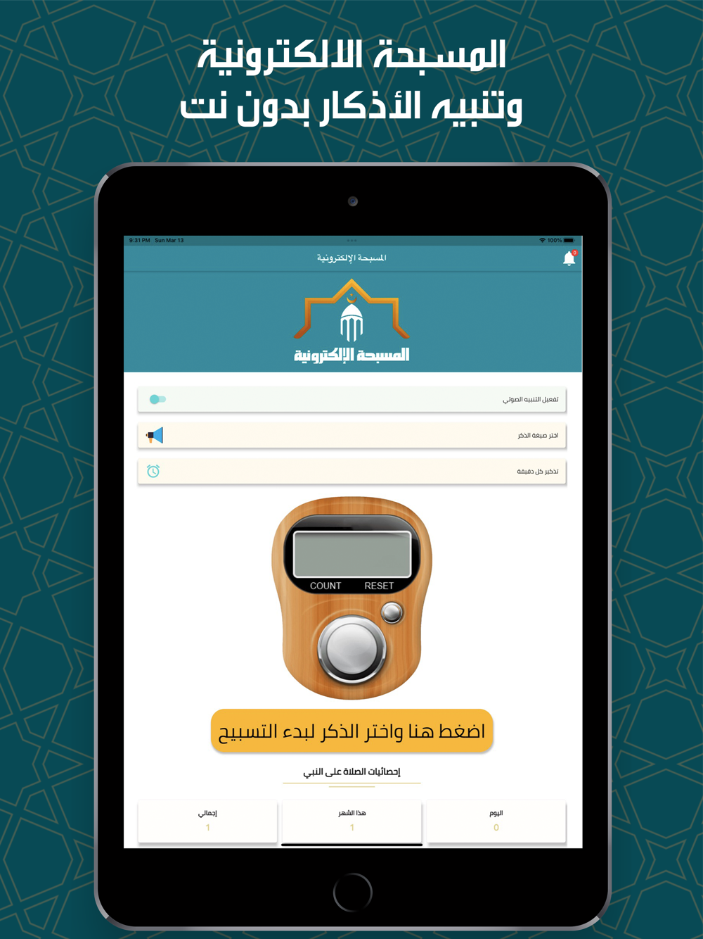 برنامج المسبحة الإلكترونية تتيح لك التركيز على التسبيح والأذكار وعدم القلق بشأن حساب عدد التسبيح من خلال الشاشة.