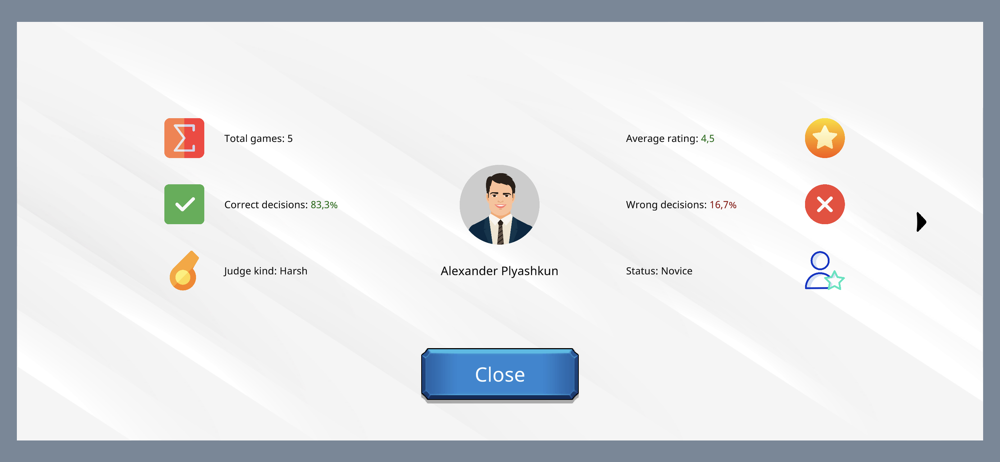 Create your own character and achieve desired goals! Read news after each game, take various awards and improve your personal statistics!