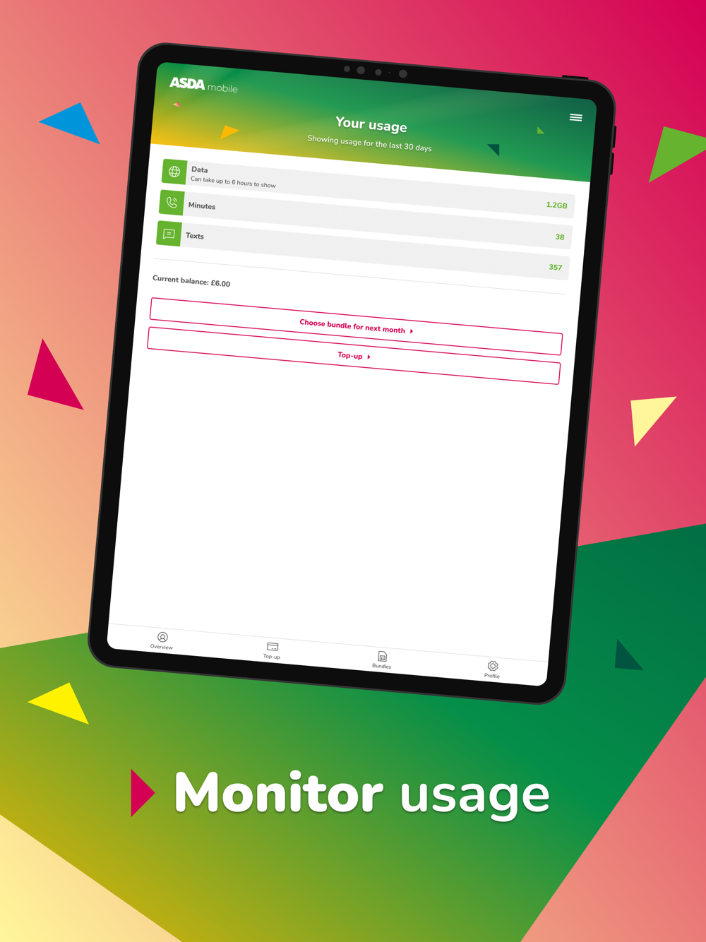 Take control with Asda Mobile’s brand new app! Jam packed with great features to make managing your mobile easier.