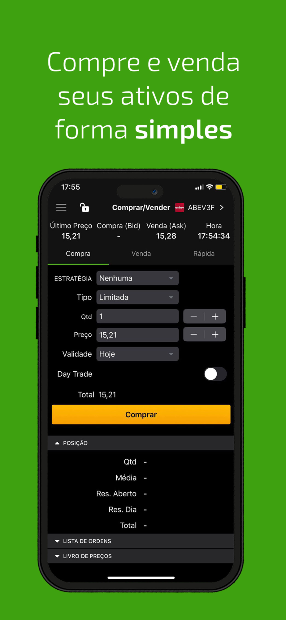 - Acompanhe as solicitações de compra e venda de ativos da bolsa;