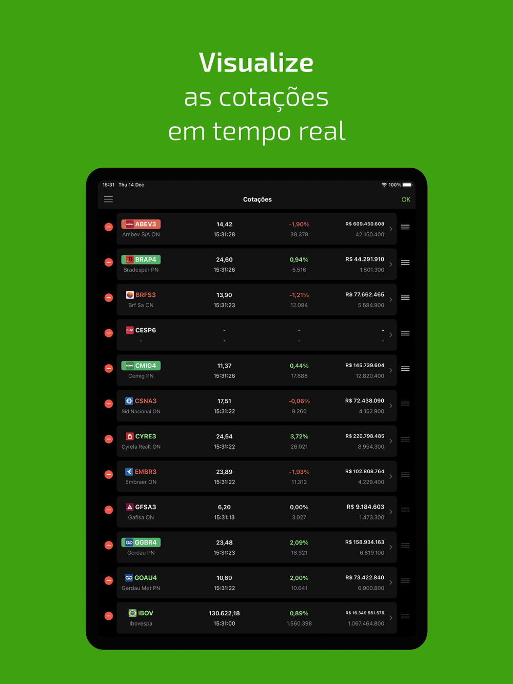 - Confira a cotação dos ativos em tempo real;