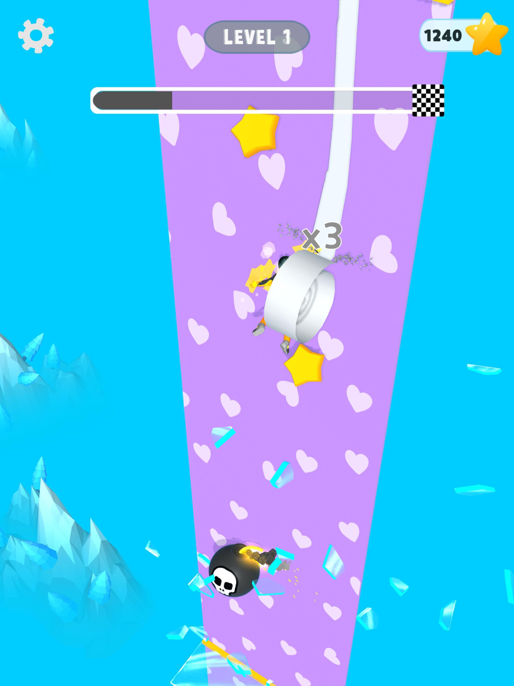 Tear the wallpaper and make a roll. Clear your way to the bottom. Break obstacles with your rolls and protect yourself. Small rolls can only shatter the glasses so use multiple rolls or a big roll to smash it right away.