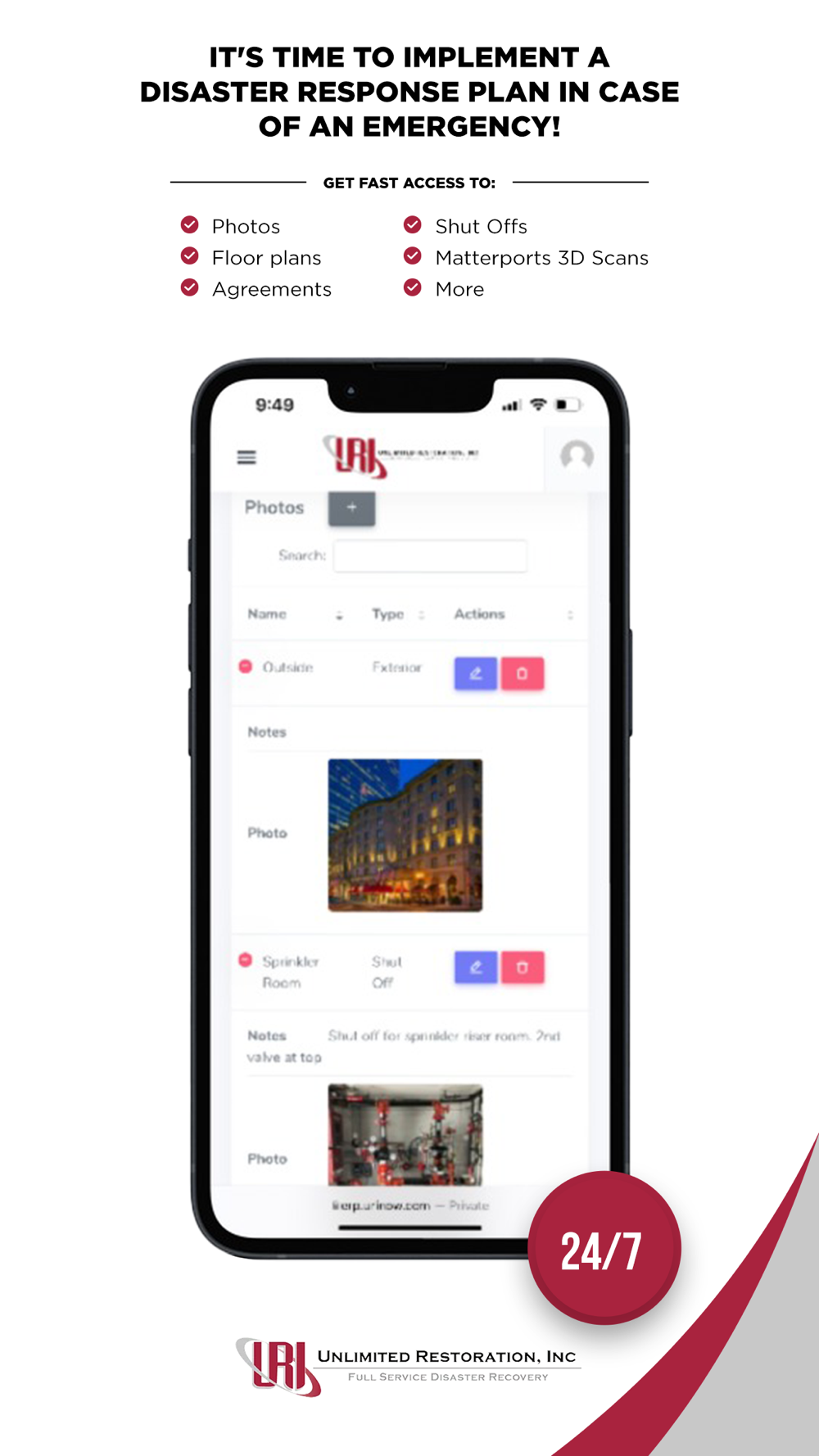 Are you prepared for the next disaster at your property? Whether it is a pipe break, sprinkler head, flood, or natural hazard - we can help you be prepared to help minimize damage, cost, and downtime. All your property data is right at your fingertips 24/7.