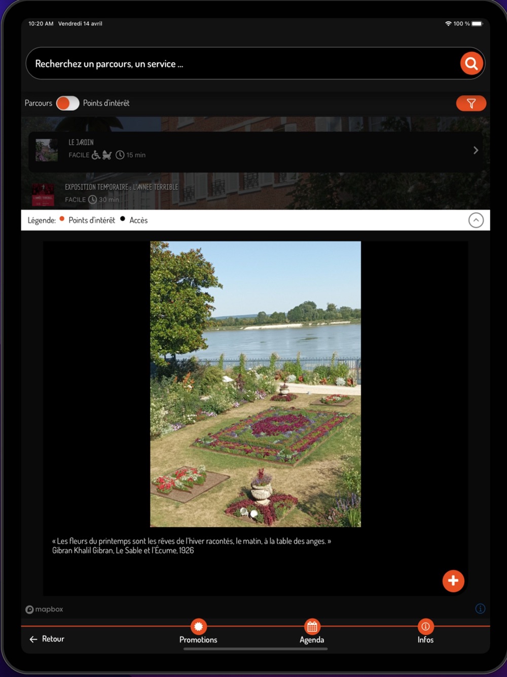 L'application est en constante évolution avec l'ajout de nouveaux sites, de nouveaux parcours, de nouveaux points d'intérêts et de nouvelles fonctionnalités.