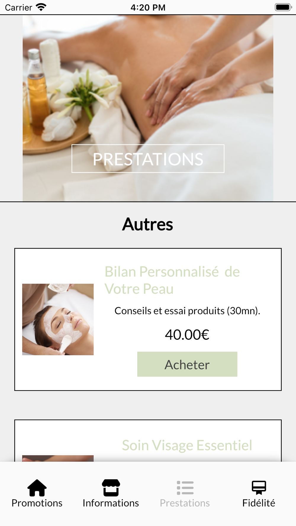 Toutes modifications concernant les informations contenus sur l'application (photos, promos,...) s'effectuent via l'application GCHRONOS.
