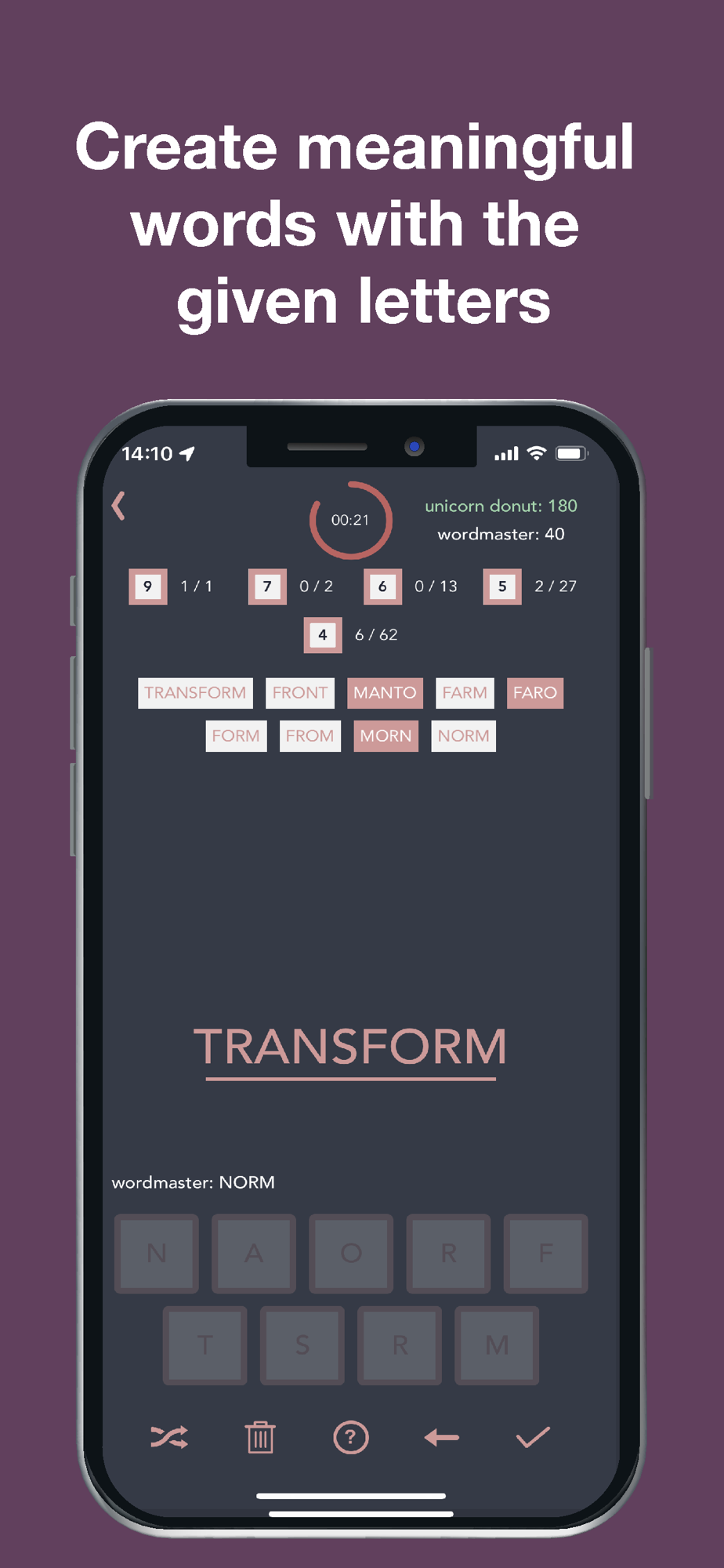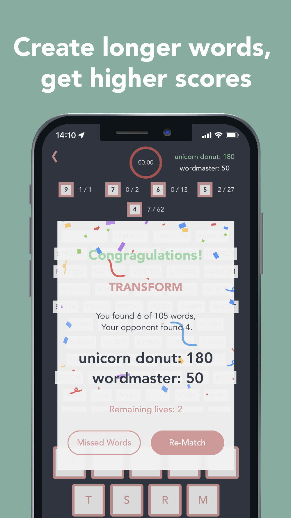 When you create longer words, you get higher scores and when you find the masterword, your score is doubled.